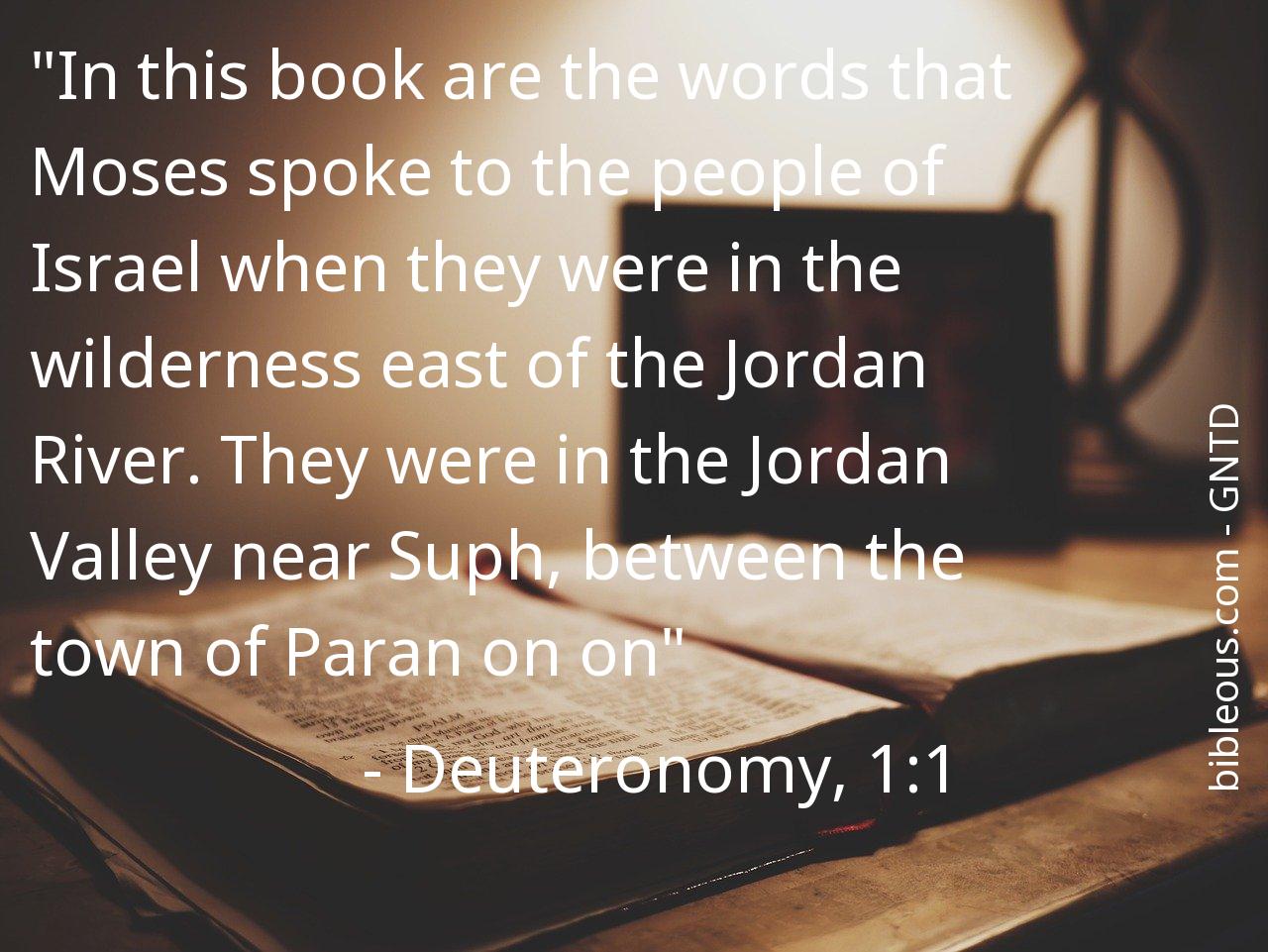 Despite everything, no word written in the Bible is superfluous. No word is missing. The word of the Lord is found in the Holy Scriptures, either in the 'Good News Translation US Version' or in any other version of the Bible. Therefore, reflecting on the verse Deuteronomy, 1:1 of the chapter 1 of the book Deuteronomy, helps us to be better Christians and to get closer to God. It is good to turn to the verse Deuteronomy, 1:1 on all those occasions when it can serve as a guide to know how to act or to bring peace to our hearts.