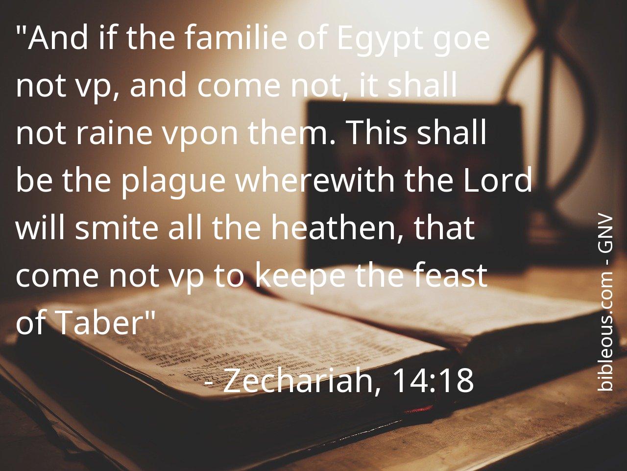 The verse Zechariah, 14:18 of the chapter 14 that presents us with the version 'Geneva Bible ' of the Bible is very interesting to carry out a reflective reading and try to deepen the wisdom of its words. What did God want to tell us with the verse Zechariah, 14:18? The chapter 14 consists of 21 of verses, which can help to contextualize and offer better references to understand what the Father wants to tell us in the verse Zechariah, 14:18.