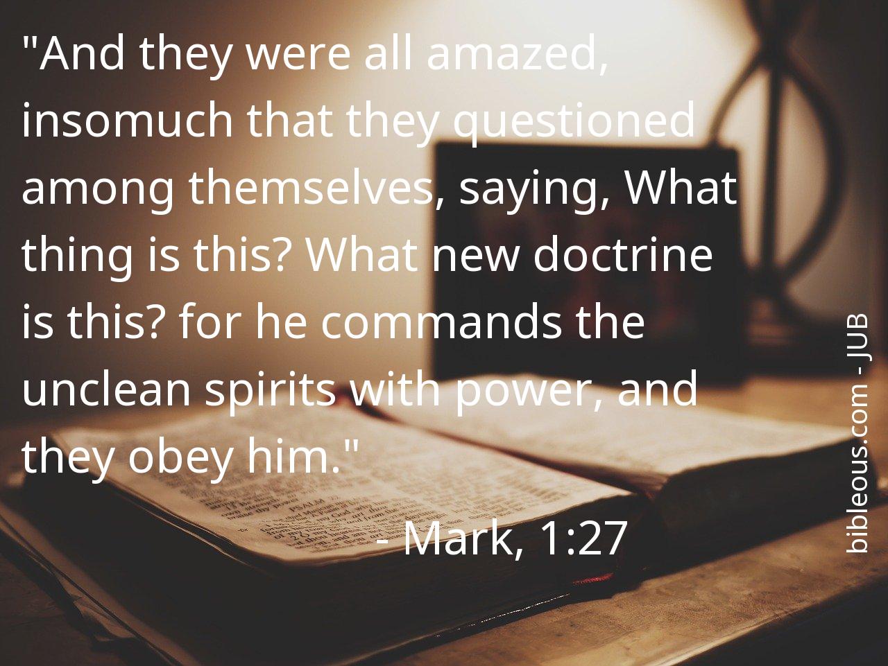 The verse Mark, 1:27 of the chapter 1 that presents us with the version 'Jubilee Bible ' of the Bible is very interesting to carry out a reflective reading and try to deepen the wisdom of its words. What did God want to tell us with the verse Mark, 1:27? The chapter 1 consists of 45 of verses, which can help to contextualize and offer better references to understand what the Father wants to tell us in the verse Mark, 1:27.