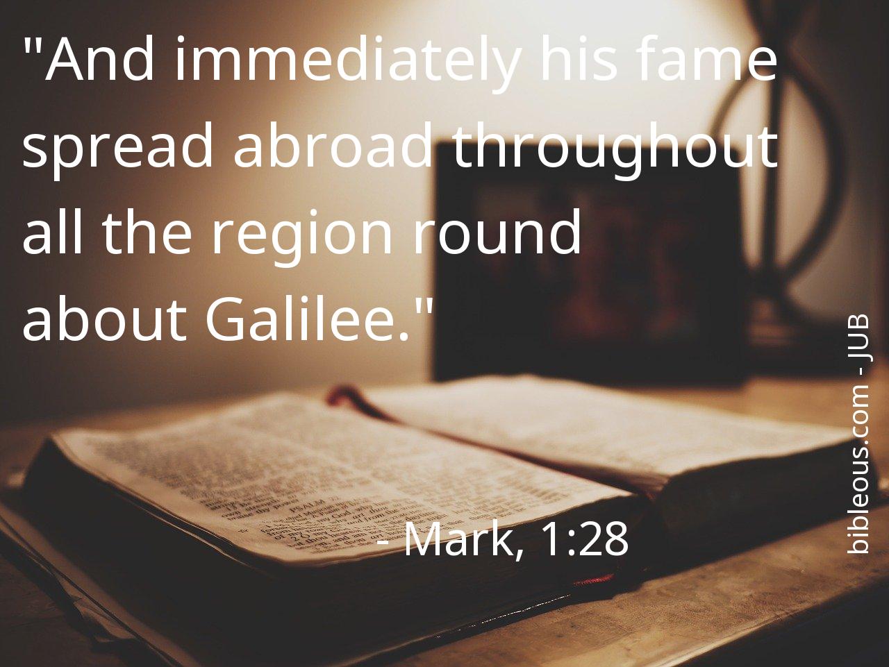 The verse Mark, 1:28 of the chapter 1 that presents us with the version 'Jubilee Bible ' of the Bible is very interesting to carry out a reflective reading and try to deepen the wisdom of its words. What did God want to tell us with the verse Mark, 1:28? The chapter 1 consists of 45 of verses, which can help to contextualize and offer better references to understand what the Father wants to tell us in the verse Mark, 1:28.