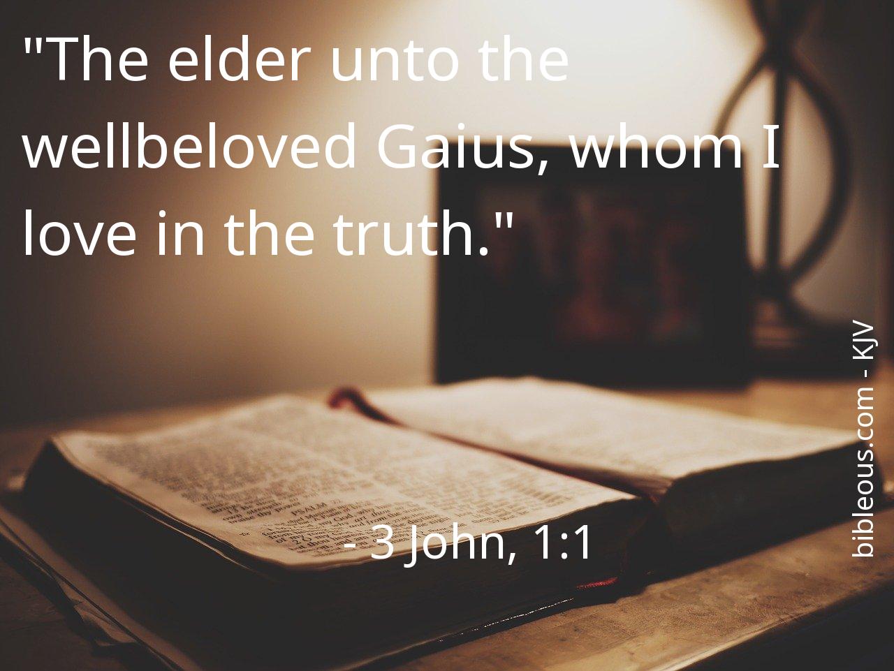 Despite everything, no word written in the Bible is superfluous. No word is missing. The word of the Lord is found in the Holy Scriptures, either in the 'King James Version ' or in any other version of the Bible. Therefore, reflecting on the verse 3 John, 1:1 of the chapter 1 of the book 3 John, helps us to be better Christians and to get closer to God. It is good to turn to the verse 3 John, 1:1 on all those occasions when it can serve as a guide to know how to act or to bring peace to our hearts.