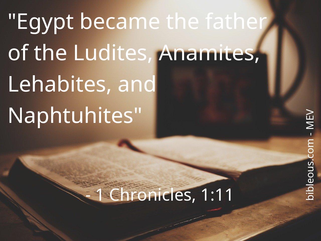 Despite everything, no word written in the Bible is superfluous. No word is missing. The word of the Lord is found in the Holy Scriptures, either in the 'Modern English Version ' or in any other version of the Bible. Therefore, reflecting on the verse 1 Chronicles, 1:11 of the chapter 1 of the book 1 Chronicles, helps us to be better Christians and to get closer to God. It is good to turn to the verse 1 Chronicles, 1:11 on all those occasions when it can serve as a guide to know how to act or to bring peace to our hearts.