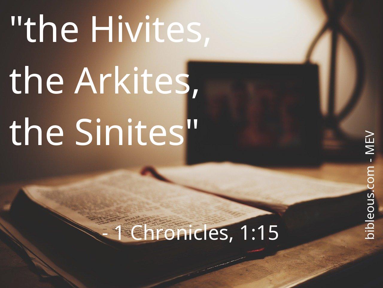 Despite everything, no word written in the Bible is superfluous. No word is missing. The word of the Lord is found in the Holy Scriptures, either in the 'Modern English Version ' or in any other version of the Bible. Therefore, reflecting on the verse 1 Chronicles, 1:15 of the chapter 1 of the book 1 Chronicles, helps us to be better Christians and to get closer to God. It is good to turn to the verse 1 Chronicles, 1:15 on all those occasions when it can serve as a guide to know how to act or to bring peace to our hearts.