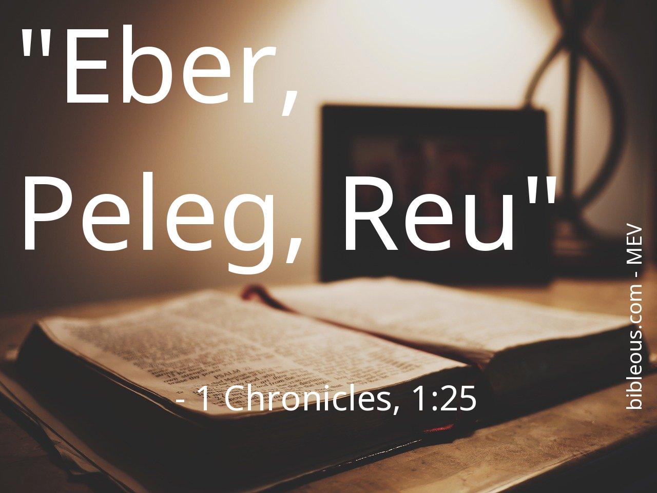 Despite everything, no word written in the Bible is superfluous. No word is missing. The word of the Lord is found in the Holy Scriptures, either in the 'Modern English Version ' or in any other version of the Bible. Therefore, reflecting on the verse 1 Chronicles, 1:25 of the chapter 1 of the book 1 Chronicles, helps us to be better Christians and to get closer to God. It is good to turn to the verse 1 Chronicles, 1:25 on all those occasions when it can serve as a guide to know how to act or to bring peace to our hearts.