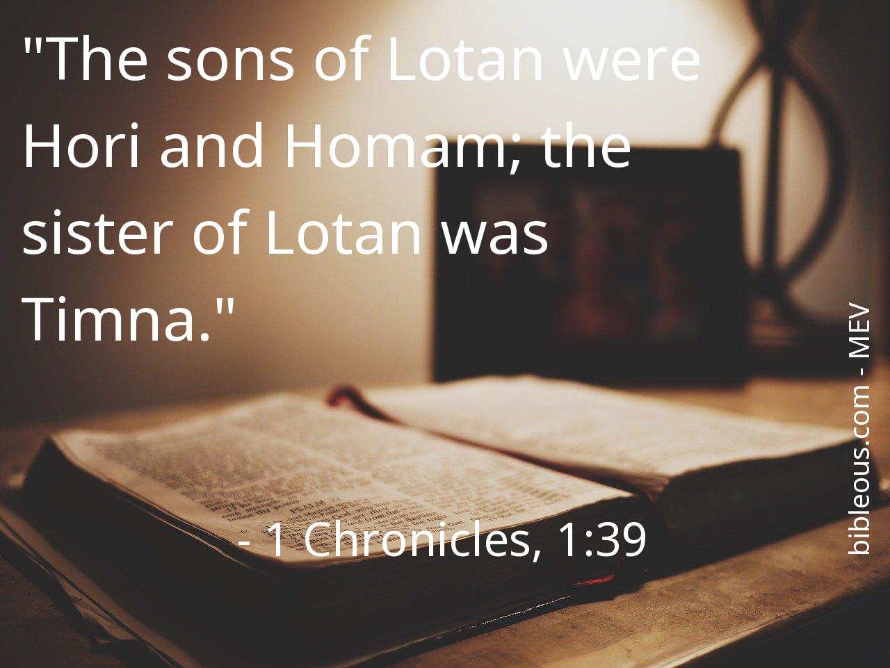 Despite everything, no word written in the Bible is superfluous. No word is missing. The word of the Lord is found in the Holy Scriptures, either in the 'Modern English Version ' or in any other version of the Bible. Therefore, reflecting on the verse 1 Chronicles, 1:39 of the chapter 1 of the book 1 Chronicles, helps us to be better Christians and to get closer to God. It is good to turn to the verse 1 Chronicles, 1:39 on all those occasions when it can serve as a guide to know how to act or to bring peace to our hearts.