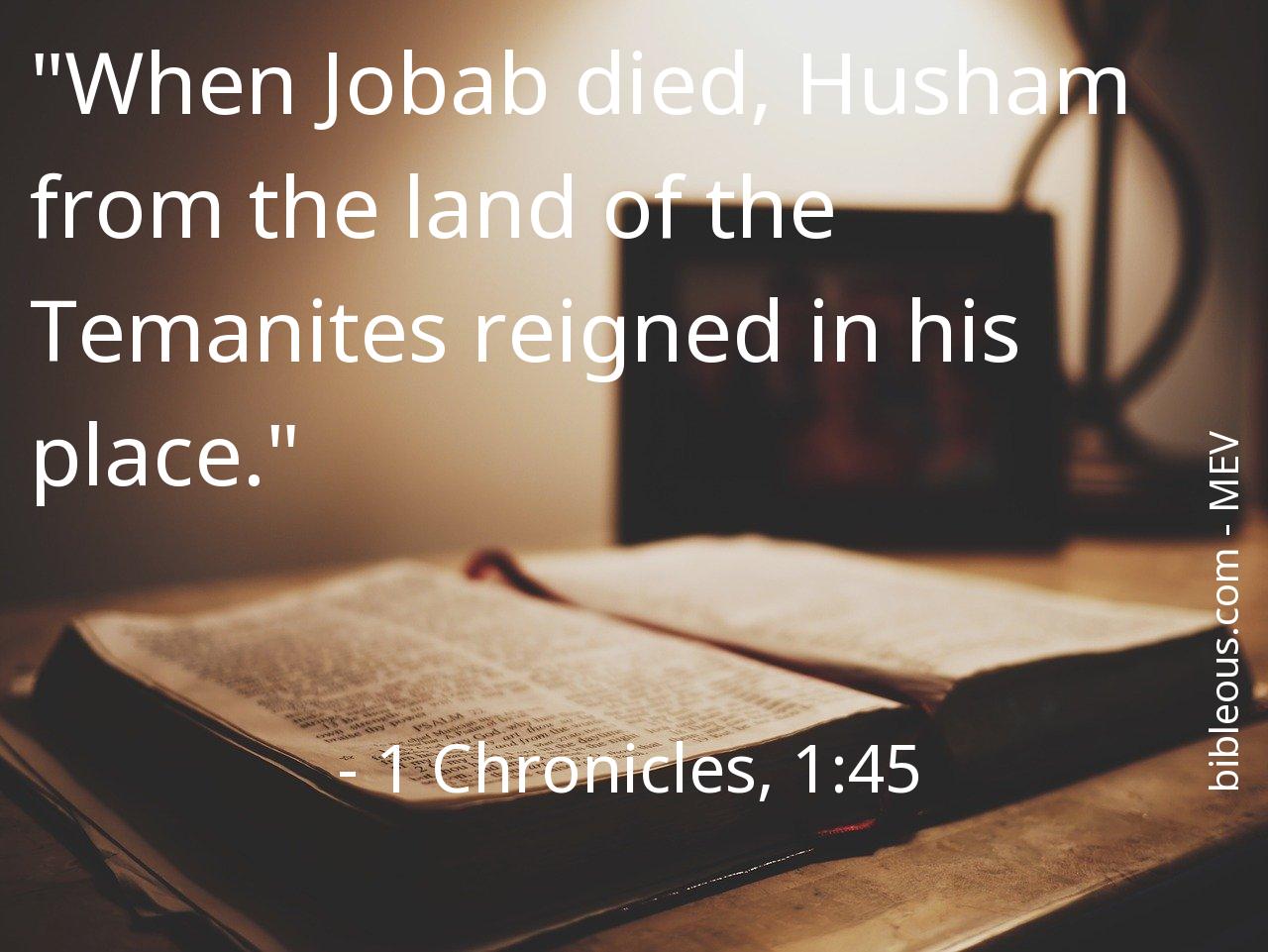 Despite everything, no word written in the Bible is superfluous. No word is missing. The word of the Lord is found in the Holy Scriptures, either in the 'Modern English Version ' or in any other version of the Bible. Therefore, reflecting on the verse 1 Chronicles, 1:45 of the chapter 1 of the book 1 Chronicles, helps us to be better Christians and to get closer to God. It is good to turn to the verse 1 Chronicles, 1:45 on all those occasions when it can serve as a guide to know how to act or to bring peace to our hearts.
