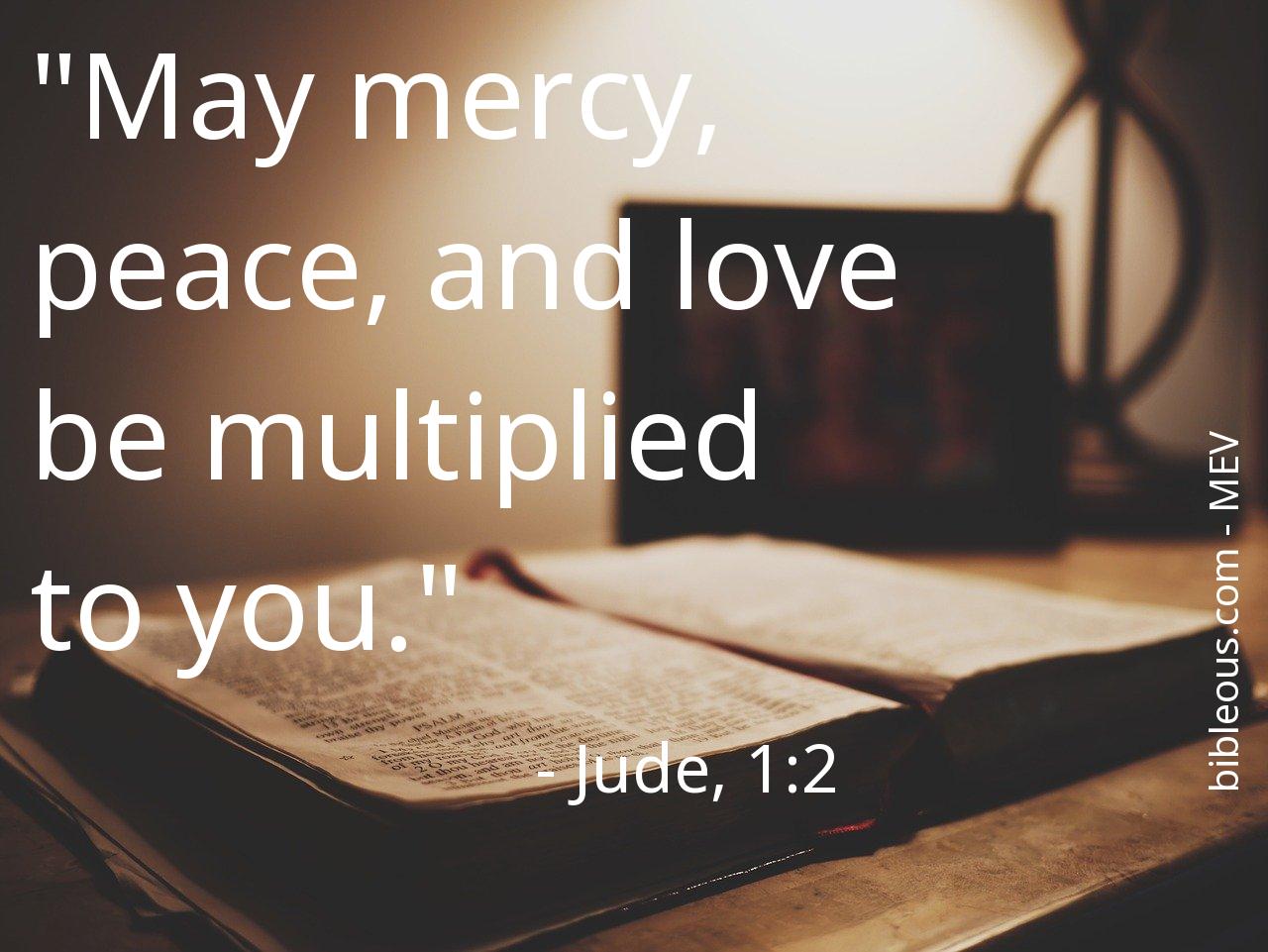 Despite everything, no word written in the Bible is superfluous. No word is missing. The word of the Lord is found in the Holy Scriptures, either in the 'Modern English Version ' or in any other version of the Bible. Therefore, reflecting on the verse Jude, 1:2 of the chapter 1 of the book Jude, helps us to be better Christians and to get closer to God. It is good to turn to the verse Jude, 1:2 on all those occasions when it can serve as a guide to know how to act or to bring peace to our hearts.