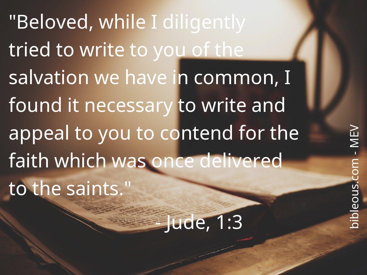 Despite everything, no word written in the Bible is superfluous. No word is missing. The word of the Lord is found in the Holy Scriptures, either in the 'Modern English Version ' or in any other version of the Bible. Therefore, reflecting on the verse Jude, 1:3 of the chapter 1 of the book Jude, helps us to be better Christians and to get closer to God. It is good to turn to the verse Jude, 1:3 on all those occasions when it can serve as a guide to know how to act or to bring peace to our hearts.