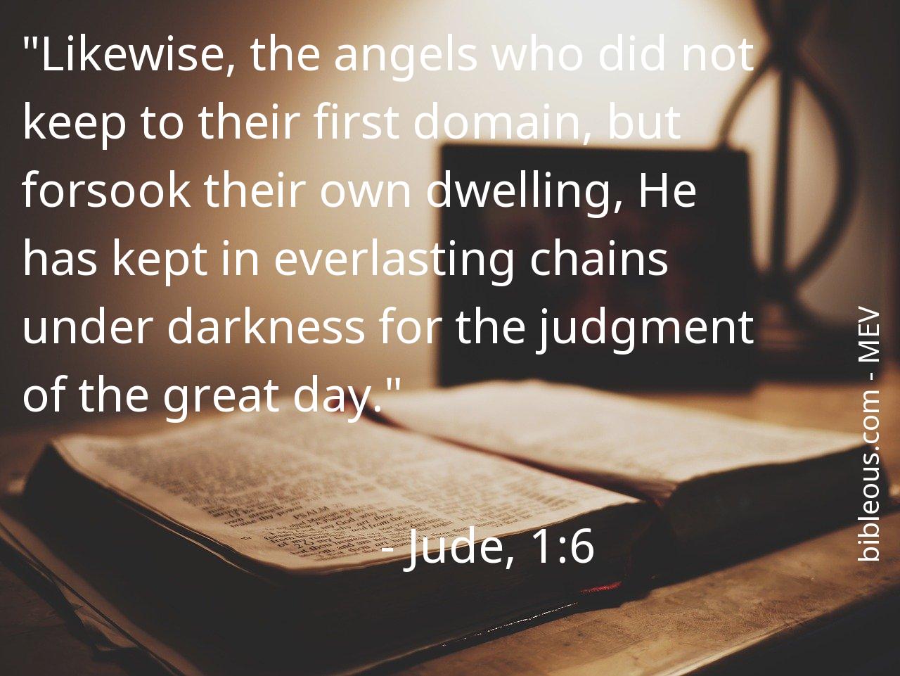 Despite everything, no word written in the Bible is superfluous. No word is missing. The word of the Lord is found in the Holy Scriptures, either in the 'Modern English Version ' or in any other version of the Bible. Therefore, reflecting on the verse Jude, 1:6 of the chapter 1 of the book Jude, helps us to be better Christians and to get closer to God. It is good to turn to the verse Jude, 1:6 on all those occasions when it can serve as a guide to know how to act or to bring peace to our hearts.