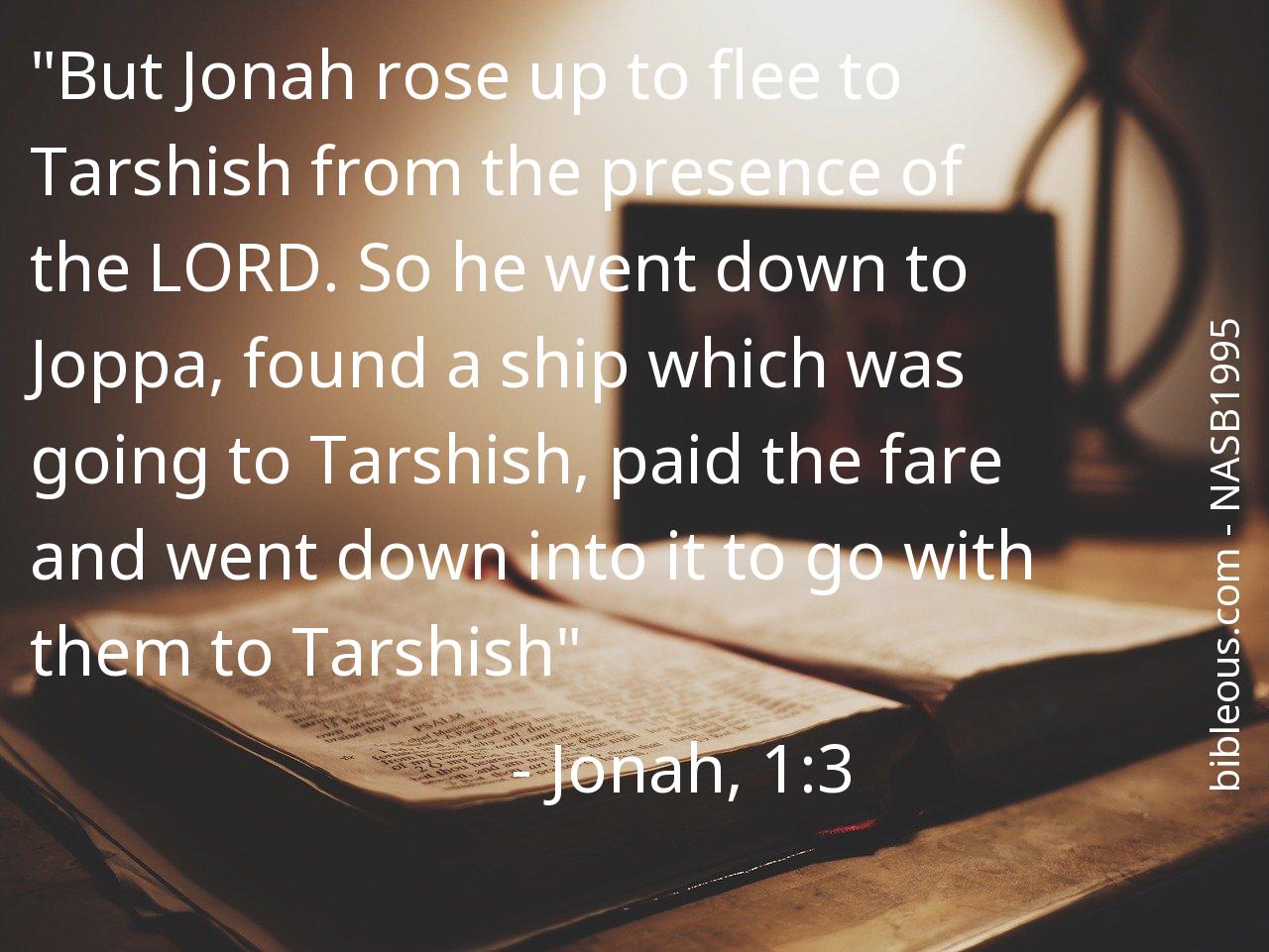The verse Jonah, 1:3 of the chapter 1 that presents us with the version 'New American Standard Bible - NASB 1995 ' of the Bible is very interesting to carry out a reflective reading and try to deepen the wisdom of its words. What did God want to tell us with the verse Jonah, 1:3? The chapter 1 consists of 17 of verses, which can help to contextualize and offer better references to understand what the Father wants to tell us in the verse Jonah, 1:3.