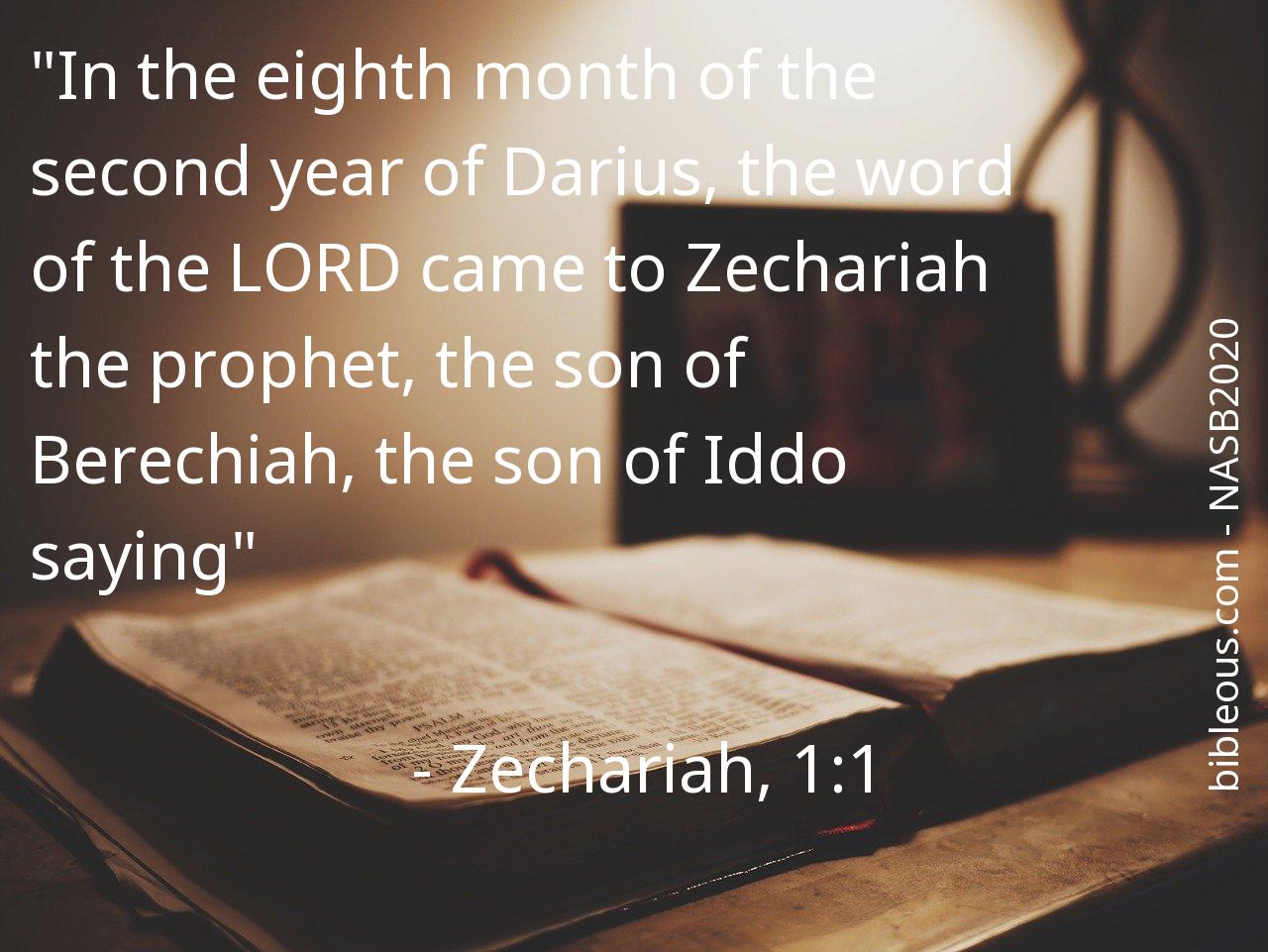 The verse Zechariah, 1:1 of the chapter 1 that presents us with the version 'New American Standard Bible - NASB ' of the Bible is very interesting to carry out a reflective reading and try to deepen the wisdom of its words. What did God want to tell us with the verse Zechariah, 1:1? The chapter 1 consists of 21 of verses, which can help to contextualize and offer better references to understand what the Father wants to tell us in the verse Zechariah, 1:1.