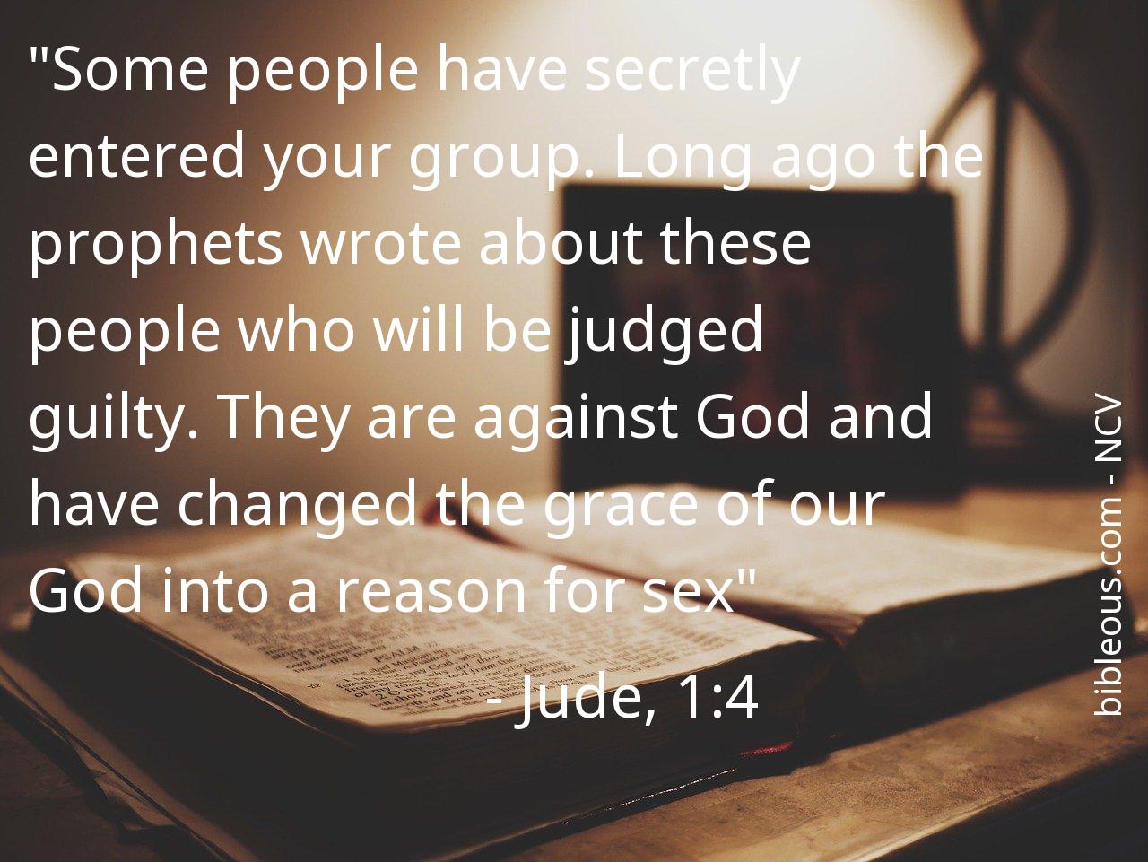 Despite everything, no word written in the Bible is superfluous. No word is missing. The word of the Lord is found in the Holy Scriptures, either in the 'New Century Version ' or in any other version of the Bible. Therefore, reflecting on the verse Jude, 1:4 of the chapter 1 of the book Jude, helps us to be better Christians and to get closer to God. It is good to turn to the verse Jude, 1:4 on all those occasions when it can serve as a guide to know how to act or to bring peace to our hearts.
