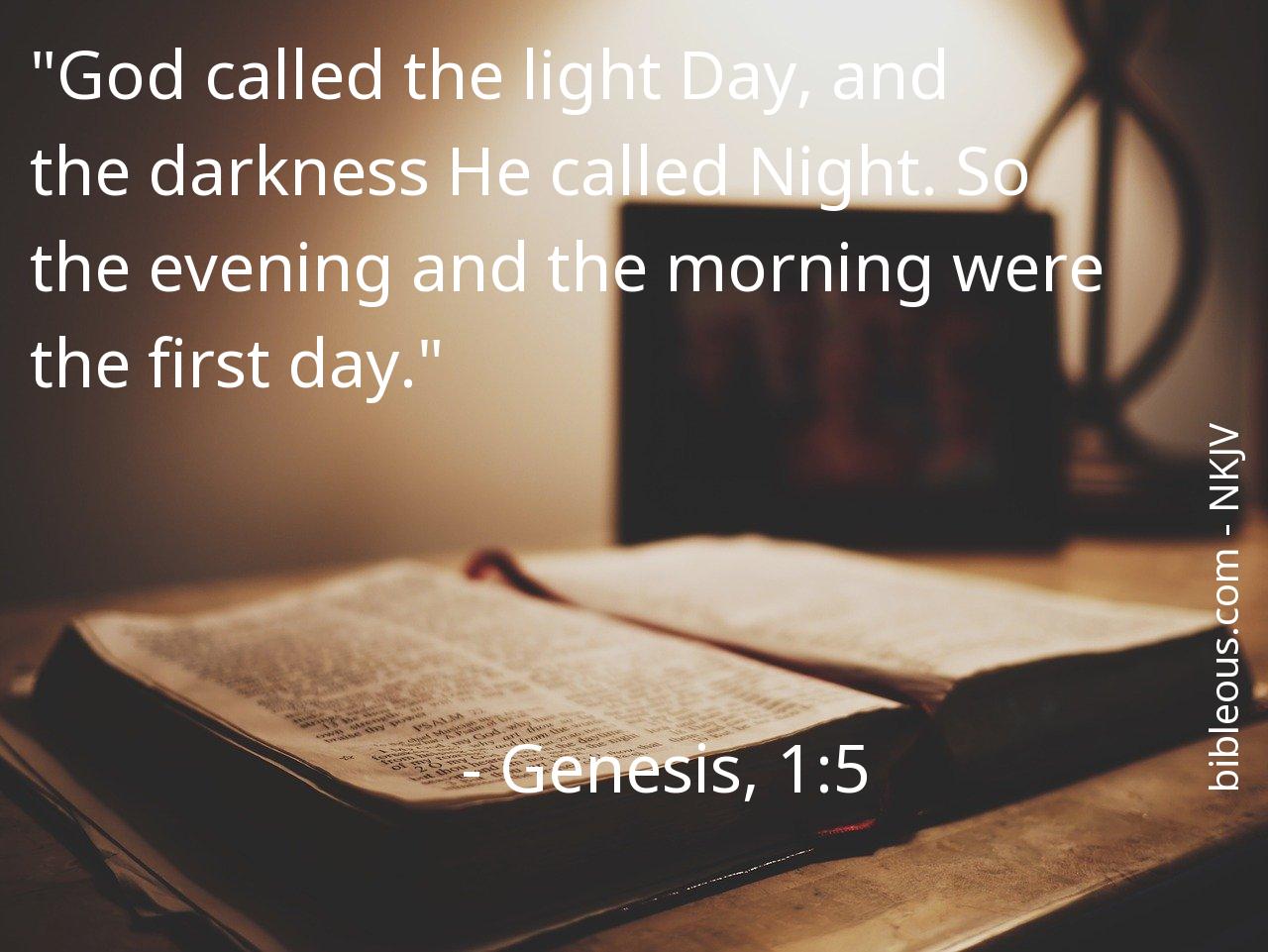 The verse Genesis, 1:5 of the chapter 1 that presents us with the version 'New King James Version ' of the Bible is very interesting to carry out a reflective reading and try to deepen the wisdom of its words. What did God want to tell us with the verse Genesis, 1:5? The chapter 1 consists of 31 of verses, which can help to contextualize and offer better references to understand what the Father wants to tell us in the verse Genesis, 1:5.