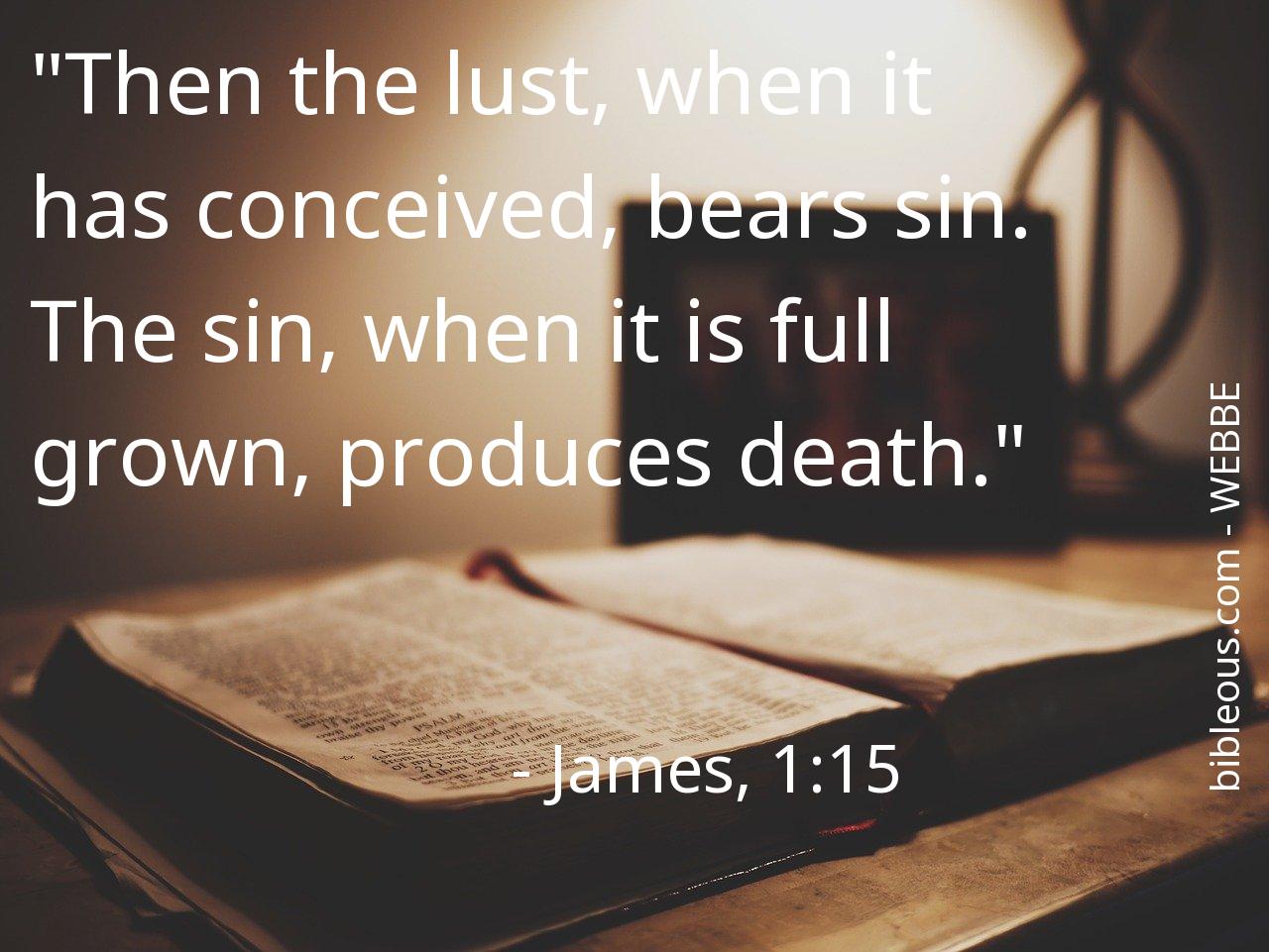 Despite everything, no word written in the Bible is superfluous. No word is missing. The word of the Lord is found in the Holy Scriptures, either in the 'World English Bible British Edition ' or in any other version of the Bible. Therefore, reflecting on the verse James, 1:15 of the chapter 1 of the book James, helps us to be better Christians and to get closer to God. It is good to turn to the verse James, 1:15 on all those occasions when it can serve as a guide to know how to act or to bring peace to our hearts.