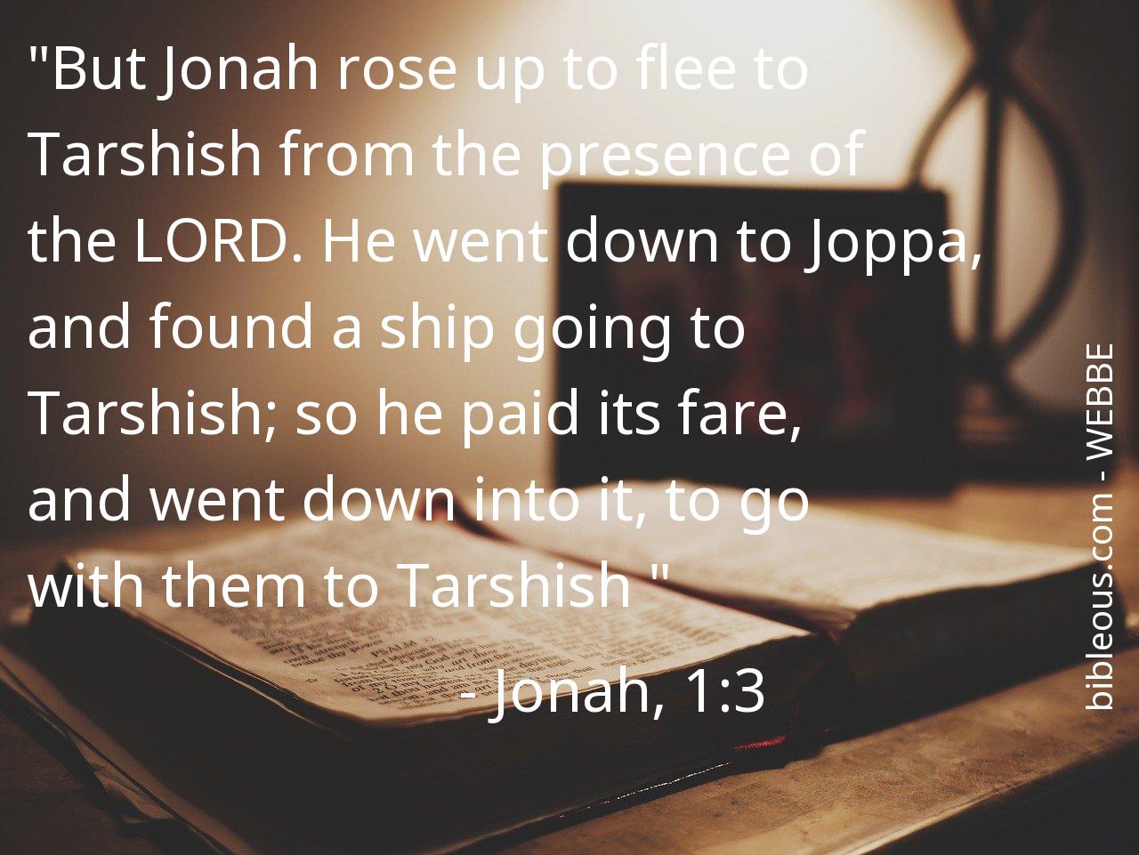 The verse Jonah, 1:3 of the chapter 1 that presents us with the version 'World English Bible British Edition ' of the Bible is very interesting to carry out a reflective reading and try to deepen the wisdom of its words. What did God want to tell us with the verse Jonah, 1:3? The chapter 1 consists of 17 of verses, which can help to contextualize and offer better references to understand what the Father wants to tell us in the verse Jonah, 1:3.