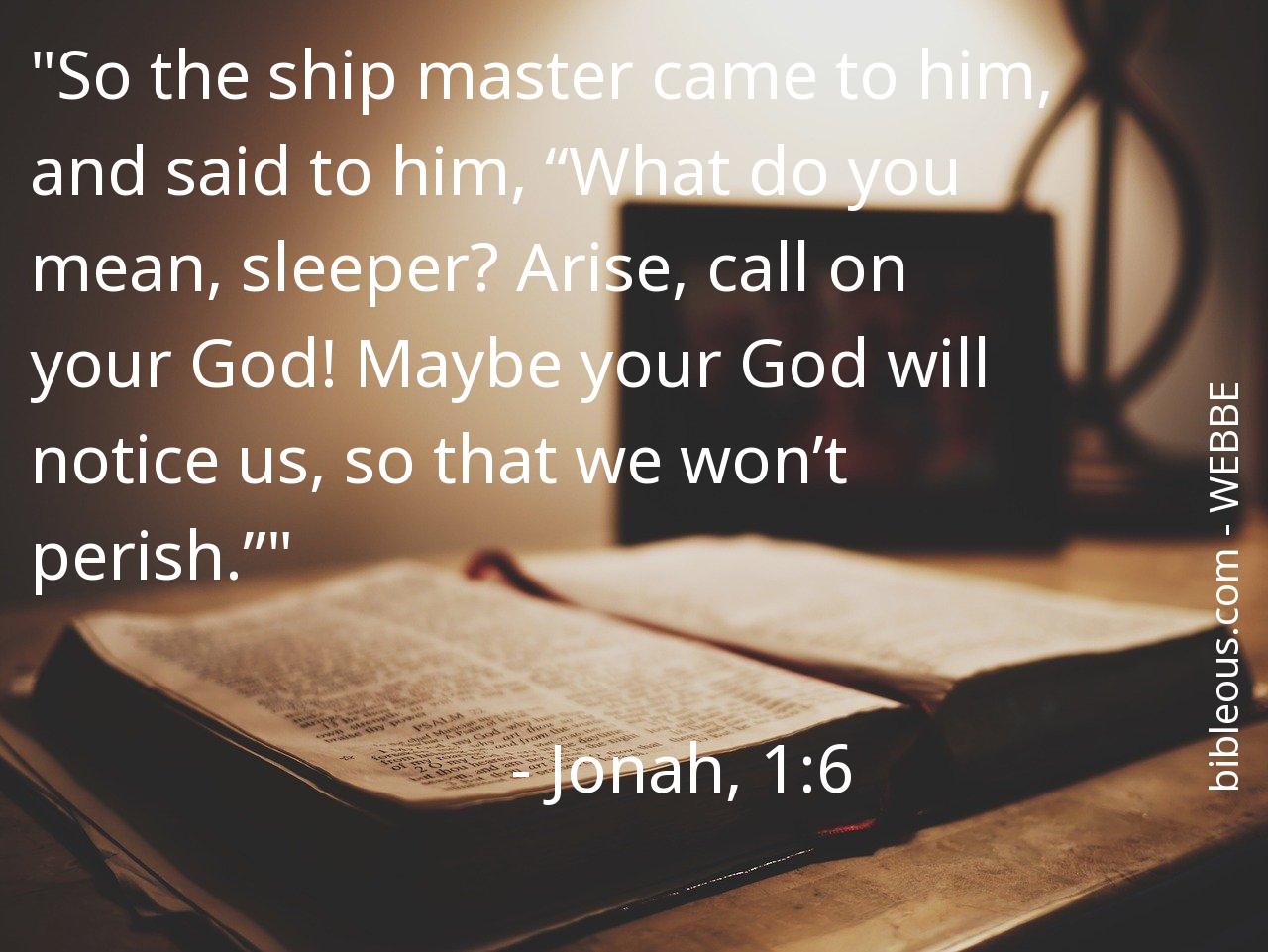 Despite everything, no word written in the Bible is superfluous. No word is missing. The word of the Lord is found in the Holy Scriptures, either in the 'World English Bible British Edition ' or in any other version of the Bible. Therefore, reflecting on the verse Jonah, 1:6 of the chapter 1 of the book Jonah, helps us to be better Christians and to get closer to God. It is good to turn to the verse Jonah, 1:6 on all those occasions when it can serve as a guide to know how to act or to bring peace to our hearts.