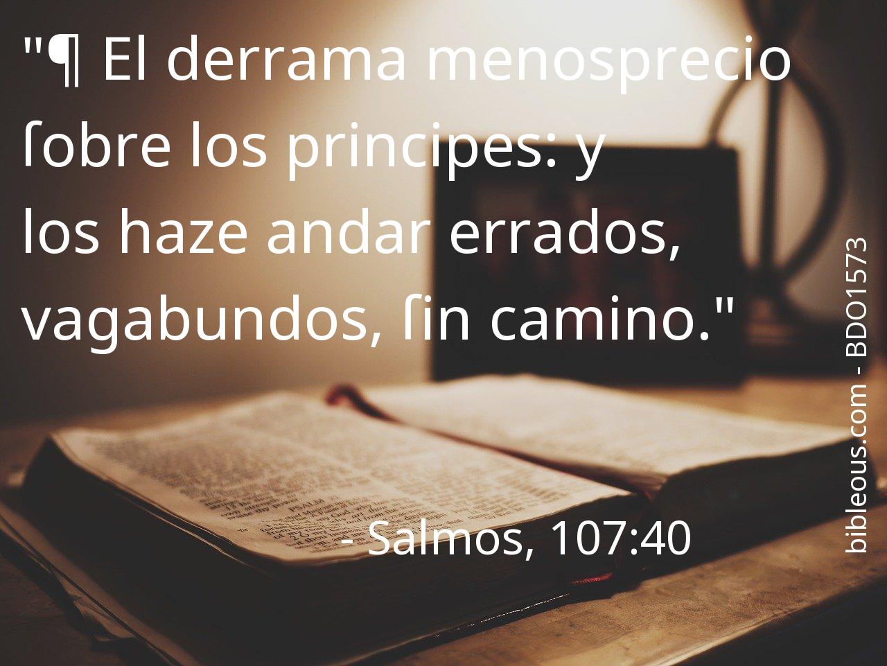 A pesar de todo, ninguna palabra escrita en la Biblia está de más. Ninguna palabra falta. La palabra del Señor se constata en las Sagradas Escrituras, ya sea en la versión 'Biblia del Oso 1573' o en cualquier otra de las versiones de la Biblia. Por eso, reflexionar sobre el versículo Salmos, 107:40 del capítulo 107 del libro Salmos, nos ayuda a ser mejores cristianos y a acercarnos más a Dios. Es bueno recurrir al versículo Salmos, 107:40 en todas aquellas ocasiones en que nos pueda servir de guía para saber cómo actuar o para traer paz a nuestros corazones.