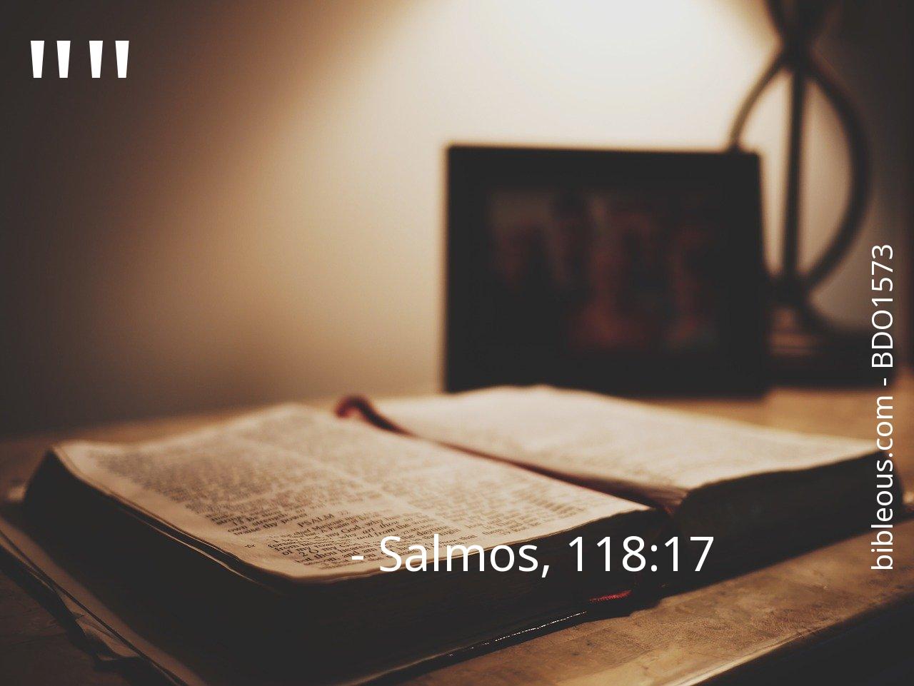 El versículo Salmos, 118:17 del capítulo 118 que nos presenta la versión 'Biblia del Oso 1573' de La Biblia resulta muy interesante para realizar una lectura reflexiva y tratar de profundizar en la sabiduría de sus palabras. ¿Qué quiso decirnos Dios con el versículo Salmos, 118:17? El capítulo 118 consta de 29 versículos, que pueden ayudar a contextualizar y ofrecer mejores referencias para comprender lo que el Padre quiere decirnos en el versículo Salmos, 118:17.