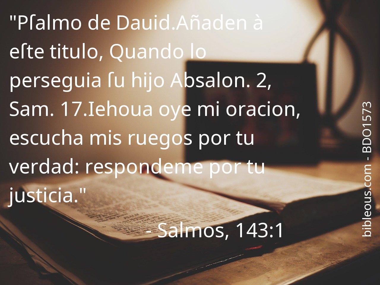 A pesar de todo, ninguna palabra escrita en la Biblia está de más. Ninguna palabra falta. La palabra del Señor se constata en las Sagradas Escrituras, ya sea en la versión 'Biblia del Oso 1573' o en cualquier otra de las versiones de la Biblia. Por eso, reflexionar sobre el versículo Salmos, 143:1 del capítulo 143 del libro Salmos, nos ayuda a ser mejores cristianos y a acercarnos más a Dios. Es bueno recurrir al versículo Salmos, 143:1 en todas aquellas ocasiones en que nos pueda servir de guía para saber cómo actuar o para traer paz a nuestros corazones.