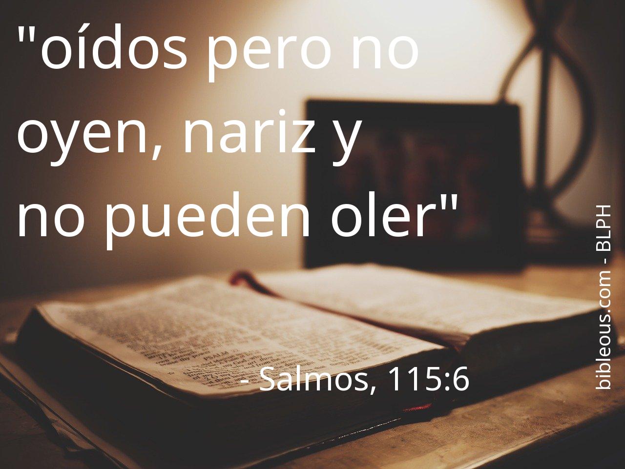 El versículo Salmos, 115:6 del capítulo 115 que nos presenta la versión 'La Palabra versión hispanoamericana' de La Biblia resulta muy interesante para realizar una lectura reflexiva y tratar de profundizar en la sabiduría de sus palabras. ¿Qué quiso decirnos Dios con el versículo Salmos, 115:6? El capítulo 115 consta de 18 versículos, que pueden ayudar a contextualizar y ofrecer mejores referencias para comprender lo que el Padre quiere decirnos en el versículo Salmos, 115:6.