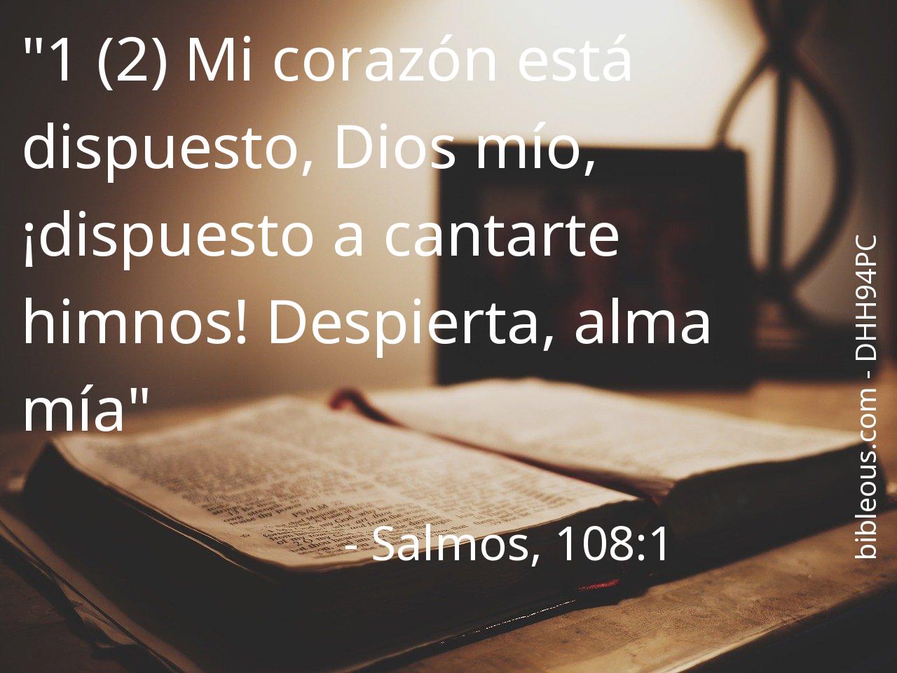 El versículo Salmos, 108:1 del capítulo 108 que nos presenta la versión 'Biblia Dios Habla Hoy' de La Biblia resulta muy interesante para realizar una lectura reflexiva y tratar de profundizar en la sabiduría de sus palabras. ¿Qué quiso decirnos Dios con el versículo Salmos, 108:1? El capítulo 108 consta de 13 versículos, que pueden ayudar a contextualizar y ofrecer mejores referencias para comprender lo que el Padre quiere decirnos en el versículo Salmos, 108:1.