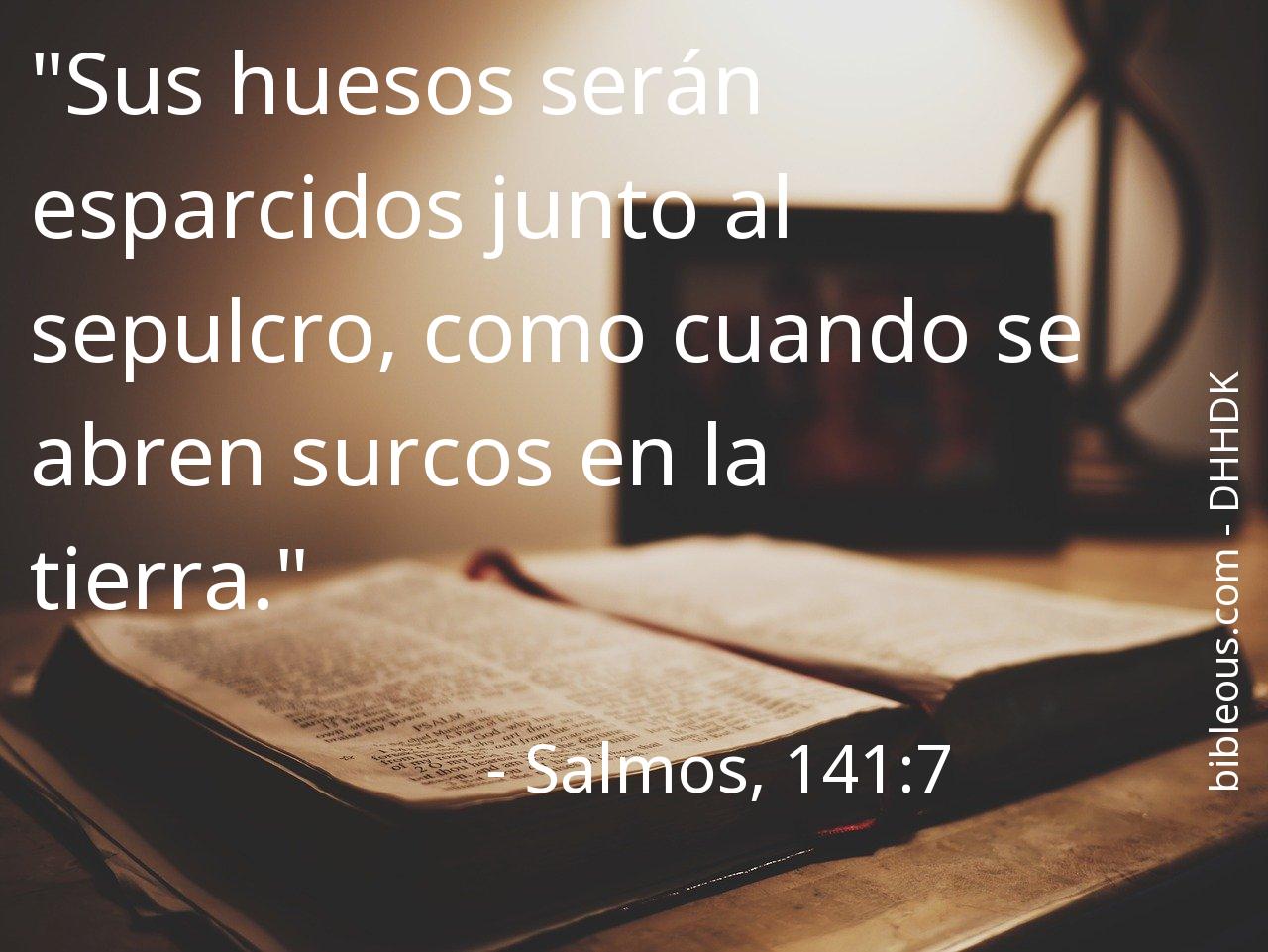 A pesar de todo, ninguna palabra escrita en la Biblia está de más. Ninguna palabra falta. La palabra del Señor se constata en las Sagradas Escrituras, ya sea en la versión 'Dios Habla Hoy DK' o en cualquier otra de las versiones de la Biblia. Por eso, reflexionar sobre el versículo Salmos, 141:7 del capítulo 141 del libro Salmos, nos ayuda a ser mejores cristianos y a acercarnos más a Dios. Es bueno recurrir al versículo Salmos, 141:7 en todas aquellas ocasiones en que nos pueda servir de guía para saber cómo actuar o para traer paz a nuestros corazones.