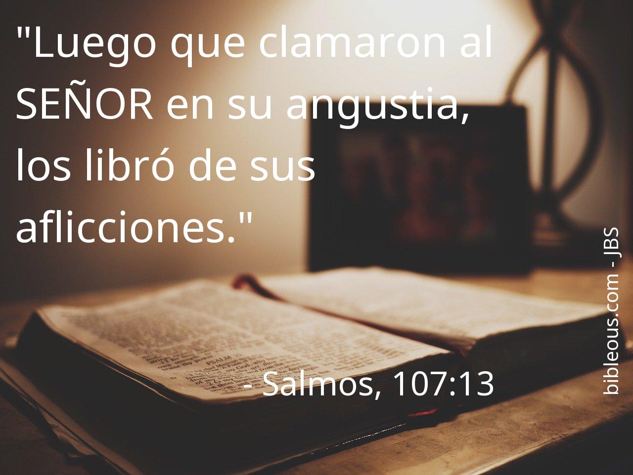 El versículo Salmos, 107:13 del capítulo 107 que nos presenta la versión 'Biblia del Jubileo' de La Biblia resulta muy interesante para realizar una lectura reflexiva y tratar de profundizar en la sabiduría de sus palabras. ¿Qué quiso decirnos Dios con el versículo Salmos, 107:13? El capítulo 107 consta de 43 versículos, que pueden ayudar a contextualizar y ofrecer mejores referencias para comprender lo que el Padre quiere decirnos en el versículo Salmos, 107:13.