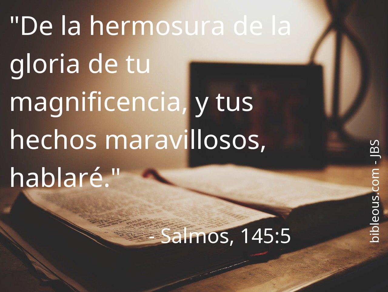 A pesar de todo, ninguna palabra escrita en la Biblia está de más. Ninguna palabra falta. La palabra del Señor se constata en las Sagradas Escrituras, ya sea en la versión 'Biblia del Jubileo' o en cualquier otra de las versiones de la Biblia. Por eso, reflexionar sobre el versículo Salmos, 145:5 del capítulo 145 del libro Salmos, nos ayuda a ser mejores cristianos y a acercarnos más a Dios. Es bueno recurrir al versículo Salmos, 145:5 en todas aquellas ocasiones en que nos pueda servir de guía para saber cómo actuar o para traer paz a nuestros corazones.