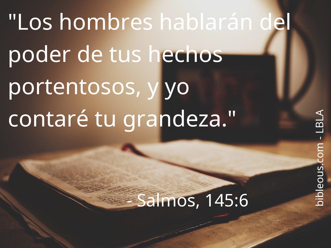 A pesar de todo, ninguna palabra escrita en la Biblia está de más. Ninguna palabra falta. La palabra del Señor se constata en las Sagradas Escrituras, ya sea en la versión 'La Biblia de las Américas' o en cualquier otra de las versiones de la Biblia. Por eso, reflexionar sobre el versículo Salmos, 145:6 del capítulo 145 del libro Salmos, nos ayuda a ser mejores cristianos y a acercarnos más a Dios. Es bueno recurrir al versículo Salmos, 145:6 en todas aquellas ocasiones en que nos pueda servir de guía para saber cómo actuar o para traer paz a nuestros corazones.