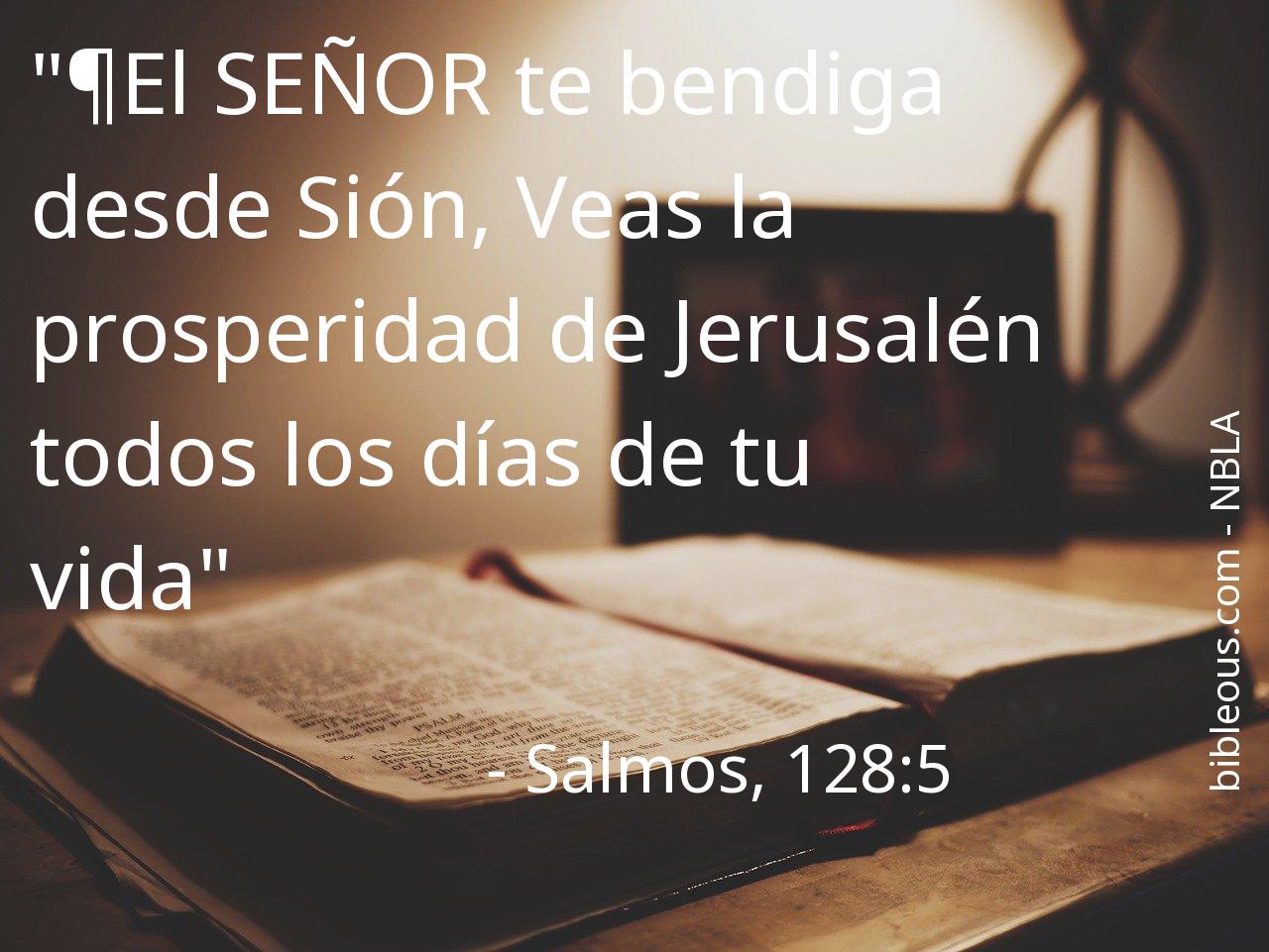 A pesar de todo, ninguna palabra escrita en la Biblia está de más. Ninguna palabra falta. La palabra del Señor se constata en las Sagradas Escrituras, ya sea en la versión 'Nueva Biblia de las Américas' o en cualquier otra de las versiones de la Biblia. Por eso, reflexionar sobre el versículo Salmos, 128:5 del capítulo 128 del libro Salmos, nos ayuda a ser mejores cristianos y a acercarnos más a Dios. Es bueno recurrir al versículo Salmos, 128:5 en todas aquellas ocasiones en que nos pueda servir de guía para saber cómo actuar o para traer paz a nuestros corazones.