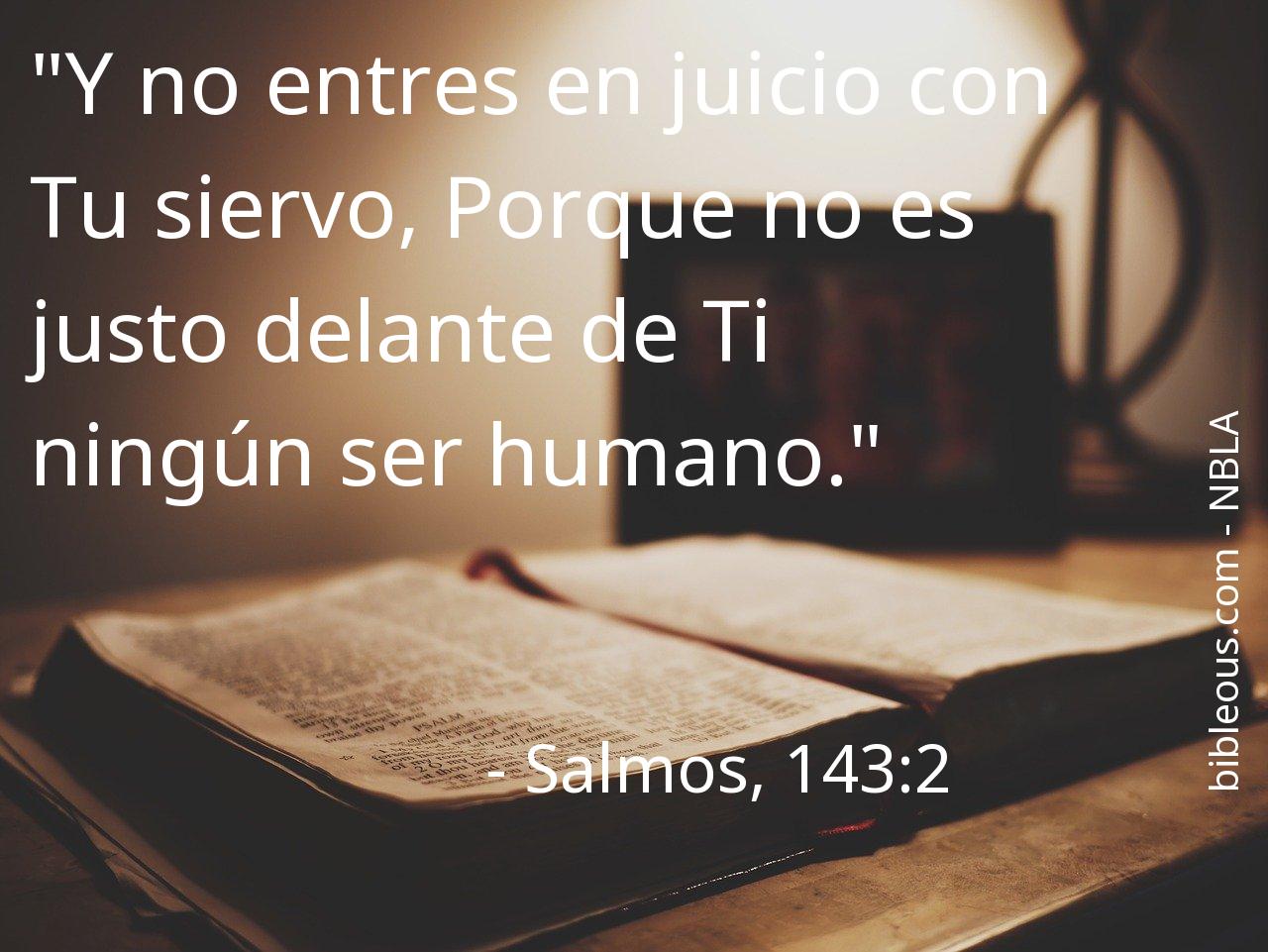 A pesar de todo, ninguna palabra escrita en la Biblia está de más. Ninguna palabra falta. La palabra del Señor se constata en las Sagradas Escrituras, ya sea en la versión 'Nueva Biblia de las Américas' o en cualquier otra de las versiones de la Biblia. Por eso, reflexionar sobre el versículo Salmos, 143:2 del capítulo 143 del libro Salmos, nos ayuda a ser mejores cristianos y a acercarnos más a Dios. Es bueno recurrir al versículo Salmos, 143:2 en todas aquellas ocasiones en que nos pueda servir de guía para saber cómo actuar o para traer paz a nuestros corazones.