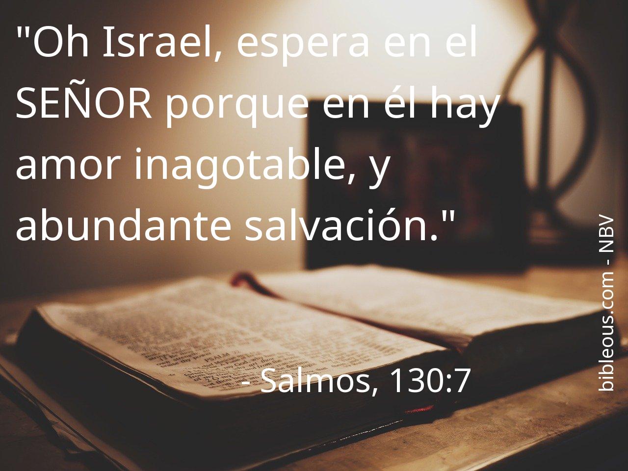 A pesar de todo, ninguna palabra escrita en la Biblia está de más. Ninguna palabra falta. La palabra del Señor se constata en las Sagradas Escrituras, ya sea en la versión 'Nueva Biblia Viva' o en cualquier otra de las versiones de la Biblia. Por eso, reflexionar sobre el versículo Salmos, 130:7 del capítulo 130 del libro Salmos, nos ayuda a ser mejores cristianos y a acercarnos más a Dios. Es bueno recurrir al versículo Salmos, 130:7 en todas aquellas ocasiones en que nos pueda servir de guía para saber cómo actuar o para traer paz a nuestros corazones.