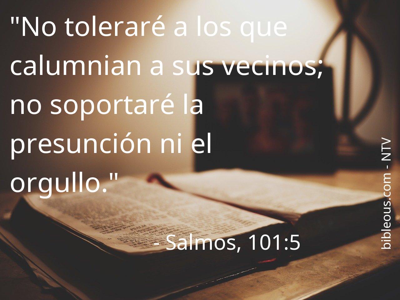 El versículo Salmos, 101:5 del capítulo 101 que nos presenta la versión 'Nueva Traducción Viviente' de La Biblia resulta muy interesante para realizar una lectura reflexiva y tratar de profundizar en la sabiduría de sus palabras. ¿Qué quiso decirnos Dios con el versículo Salmos, 101:5? El capítulo 101 consta de 8 versículos, que pueden ayudar a contextualizar y ofrecer mejores referencias para comprender lo que el Padre quiere decirnos en el versículo Salmos, 101:5.