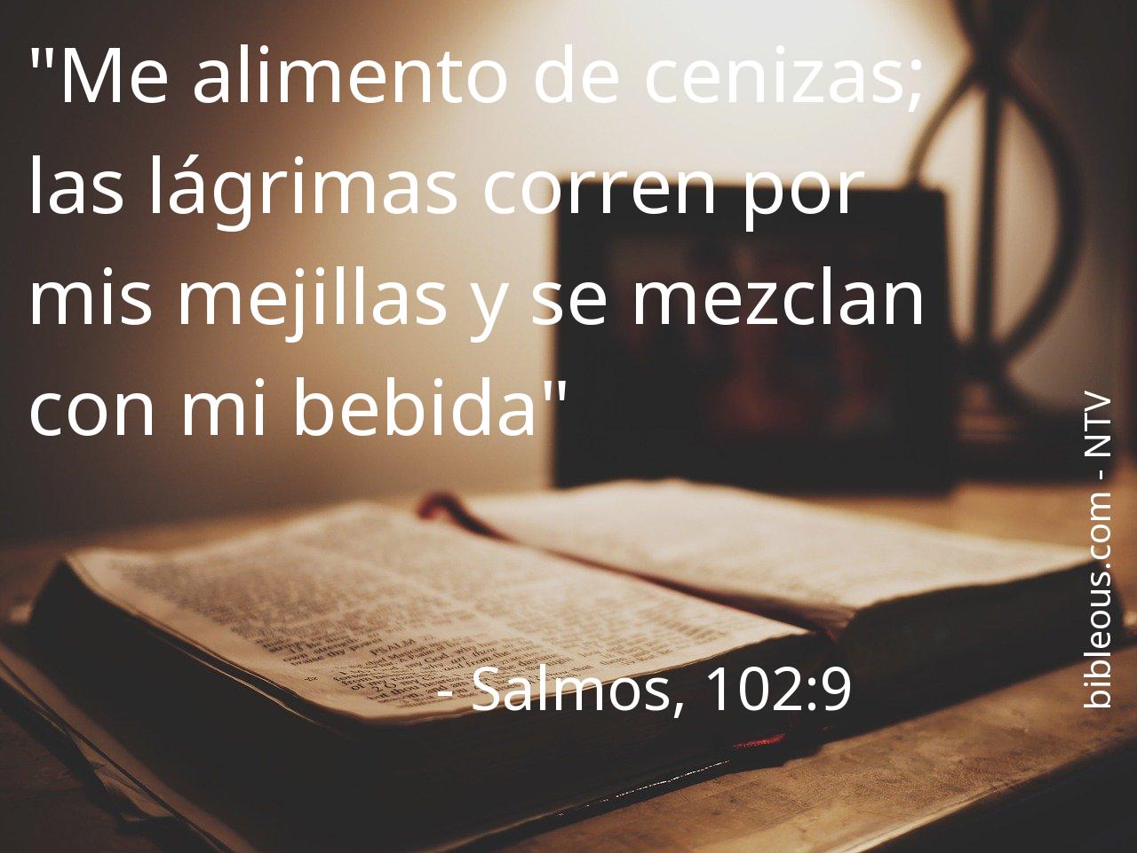 A pesar de todo, ninguna palabra escrita en la Biblia está de más. Ninguna palabra falta. La palabra del Señor se constata en las Sagradas Escrituras, ya sea en la versión 'Nueva Traducción Viviente' o en cualquier otra de las versiones de la Biblia. Por eso, reflexionar sobre el versículo Salmos, 102:9 del capítulo 102 del libro Salmos, nos ayuda a ser mejores cristianos y a acercarnos más a Dios. Es bueno recurrir al versículo Salmos, 102:9 en todas aquellas ocasiones en que nos pueda servir de guía para saber cómo actuar o para traer paz a nuestros corazones.