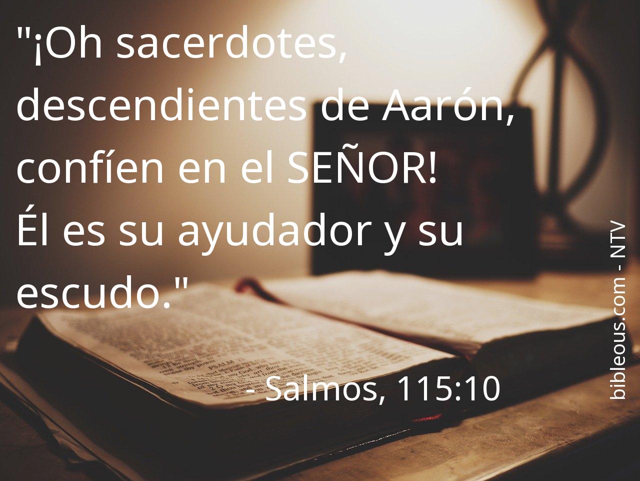 El versículo Salmos, 115:10 del capítulo 115 que nos presenta la versión 'Nueva Traducción Viviente' de La Biblia resulta muy interesante para realizar una lectura reflexiva y tratar de profundizar en la sabiduría de sus palabras. ¿Qué quiso decirnos Dios con el versículo Salmos, 115:10? El capítulo 115 consta de 18 versículos, que pueden ayudar a contextualizar y ofrecer mejores referencias para comprender lo que el Padre quiere decirnos en el versículo Salmos, 115:10.