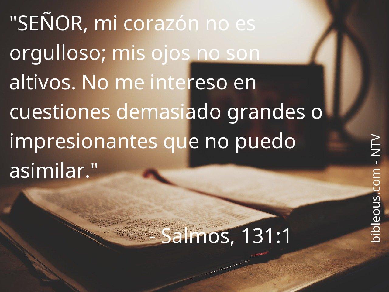 A pesar de todo, ninguna palabra escrita en la Biblia está de más. Ninguna palabra falta. La palabra del Señor se constata en las Sagradas Escrituras, ya sea en la versión 'Nueva Traducción Viviente' o en cualquier otra de las versiones de la Biblia. Por eso, reflexionar sobre el versículo Salmos, 131:1 del capítulo 131 del libro Salmos, nos ayuda a ser mejores cristianos y a acercarnos más a Dios. Es bueno recurrir al versículo Salmos, 131:1 en todas aquellas ocasiones en que nos pueda servir de guía para saber cómo actuar o para traer paz a nuestros corazones.