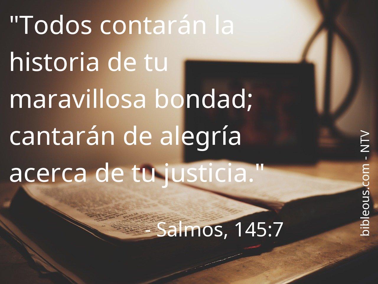 A pesar de todo, ninguna palabra escrita en la Biblia está de más. Ninguna palabra falta. La palabra del Señor se constata en las Sagradas Escrituras, ya sea en la versión 'Nueva Traducción Viviente' o en cualquier otra de las versiones de la Biblia. Por eso, reflexionar sobre el versículo Salmos, 145:7 del capítulo 145 del libro Salmos, nos ayuda a ser mejores cristianos y a acercarnos más a Dios. Es bueno recurrir al versículo Salmos, 145:7 en todas aquellas ocasiones en que nos pueda servir de guía para saber cómo actuar o para traer paz a nuestros corazones.