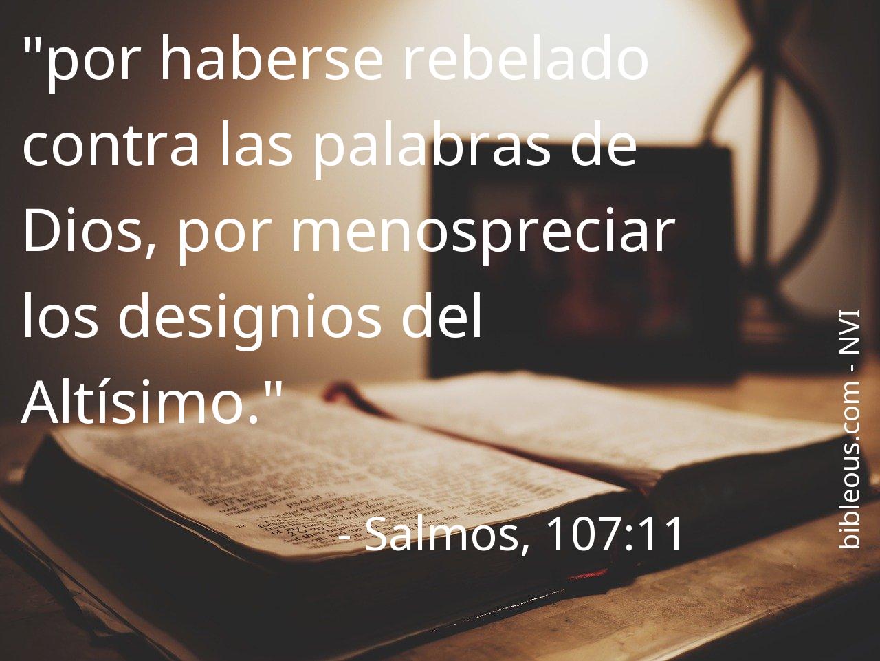 A pesar de todo, ninguna palabra escrita en la Biblia está de más. Ninguna palabra falta. La palabra del Señor se constata en las Sagradas Escrituras, ya sea en la versión 'Nueva Versión Internacional - Español' o en cualquier otra de las versiones de la Biblia. Por eso, reflexionar sobre el versículo Salmos, 107:11 del capítulo 107 del libro Salmos, nos ayuda a ser mejores cristianos y a acercarnos más a Dios. Es bueno recurrir al versículo Salmos, 107:11 en todas aquellas ocasiones en que nos pueda servir de guía para saber cómo actuar o para traer paz a nuestros corazones.