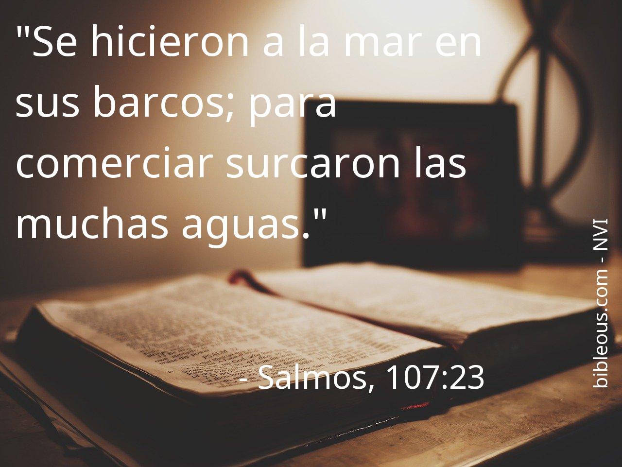 A pesar de todo, ninguna palabra escrita en la Biblia está de más. Ninguna palabra falta. La palabra del Señor se constata en las Sagradas Escrituras, ya sea en la versión 'Nueva Versión Internacional - Español' o en cualquier otra de las versiones de la Biblia. Por eso, reflexionar sobre el versículo Salmos, 107:23 del capítulo 107 del libro Salmos, nos ayuda a ser mejores cristianos y a acercarnos más a Dios. Es bueno recurrir al versículo Salmos, 107:23 en todas aquellas ocasiones en que nos pueda servir de guía para saber cómo actuar o para traer paz a nuestros corazones.