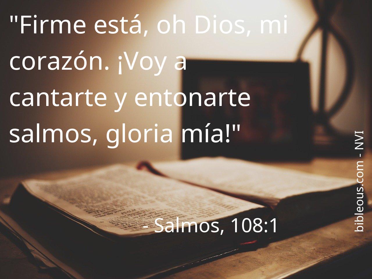 El versículo Salmos, 108:1 del capítulo 108 que nos presenta la versión 'Nueva Versión Internacional - Español' de La Biblia resulta muy interesante para realizar una lectura reflexiva y tratar de profundizar en la sabiduría de sus palabras. ¿Qué quiso decirnos Dios con el versículo Salmos, 108:1? El capítulo 108 consta de 13 versículos, que pueden ayudar a contextualizar y ofrecer mejores referencias para comprender lo que el Padre quiere decirnos en el versículo Salmos, 108:1.
