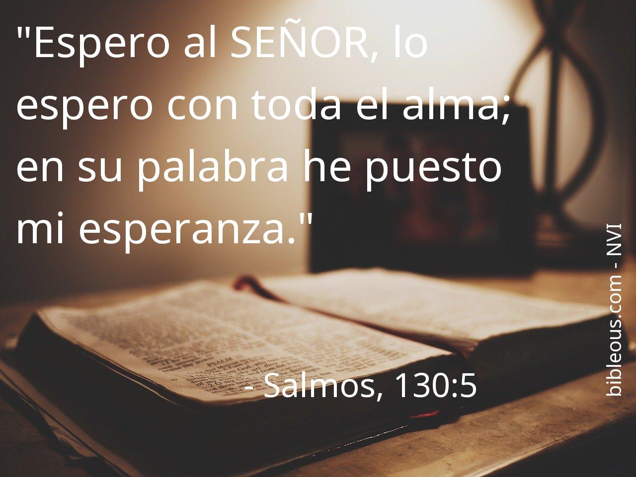El versículo Salmos, 130:5 del capítulo 130 que nos presenta la versión 'Nueva Versión Internacional - Español' de La Biblia resulta muy interesante para realizar una lectura reflexiva y tratar de profundizar en la sabiduría de sus palabras. ¿Qué quiso decirnos Dios con el versículo Salmos, 130:5? El capítulo 130 consta de 8 versículos, que pueden ayudar a contextualizar y ofrecer mejores referencias para comprender lo que el Padre quiere decirnos en el versículo Salmos, 130:5.