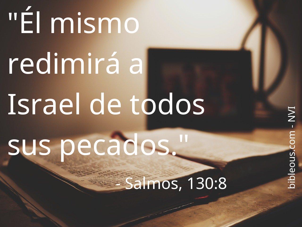 A pesar de todo, ninguna palabra escrita en la Biblia está de más. Ninguna palabra falta. La palabra del Señor se constata en las Sagradas Escrituras, ya sea en la versión 'Nueva Versión Internacional - Español' o en cualquier otra de las versiones de la Biblia. Por eso, reflexionar sobre el versículo Salmos, 130:8 del capítulo 130 del libro Salmos, nos ayuda a ser mejores cristianos y a acercarnos más a Dios. Es bueno recurrir al versículo Salmos, 130:8 en todas aquellas ocasiones en que nos pueda servir de guía para saber cómo actuar o para traer paz a nuestros corazones.