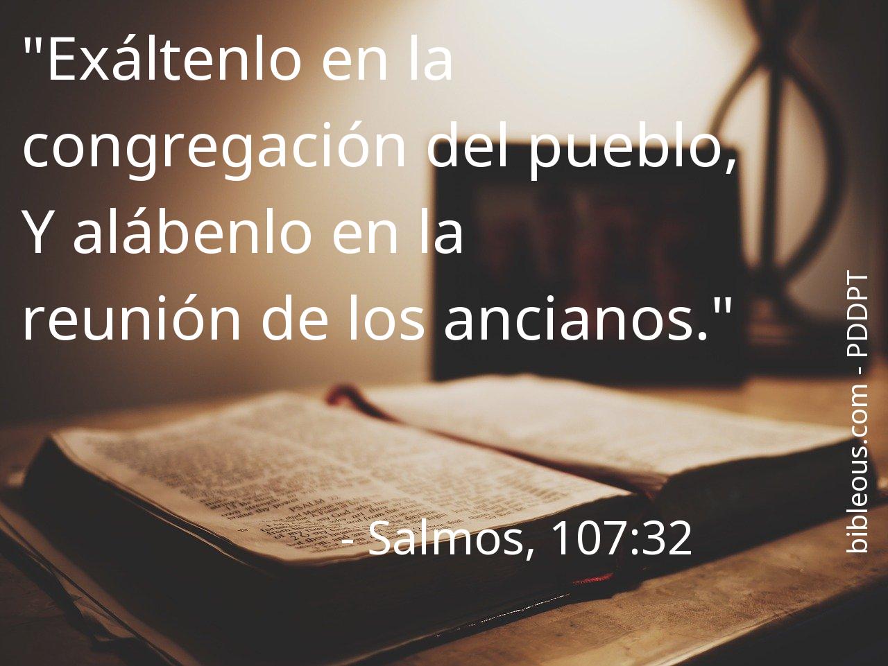 A pesar de todo, ninguna palabra escrita en la Biblia está de más. Ninguna palabra falta. La palabra del Señor se constata en las Sagradas Escrituras, ya sea en la versión 'Palabla de Dios para ti' o en cualquier otra de las versiones de la Biblia. Por eso, reflexionar sobre el versículo Salmos, 107:32 del capítulo 107 del libro Salmos, nos ayuda a ser mejores cristianos y a acercarnos más a Dios. Es bueno recurrir al versículo Salmos, 107:32 en todas aquellas ocasiones en que nos pueda servir de guía para saber cómo actuar o para traer paz a nuestros corazones.