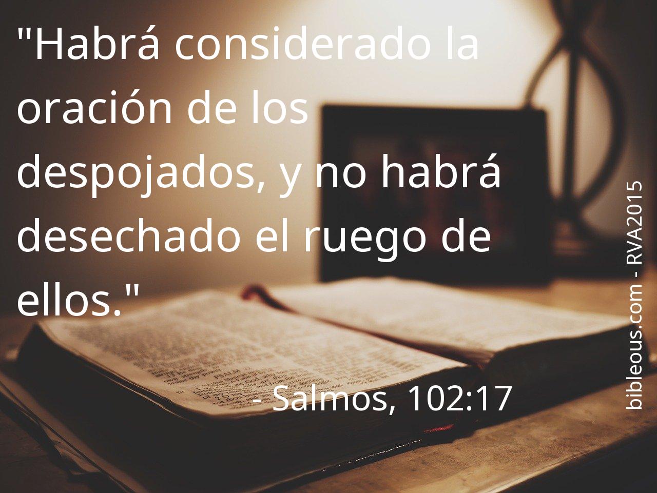 A pesar de todo, ninguna palabra escrita en la Biblia está de más. Ninguna palabra falta. La palabra del Señor se constata en las Sagradas Escrituras, ya sea en la versión 'Reina Valera Actualizada' o en cualquier otra de las versiones de la Biblia. Por eso, reflexionar sobre el versículo Salmos, 102:17 del capítulo 102 del libro Salmos, nos ayuda a ser mejores cristianos y a acercarnos más a Dios. Es bueno recurrir al versículo Salmos, 102:17 en todas aquellas ocasiones en que nos pueda servir de guía para saber cómo actuar o para traer paz a nuestros corazones.