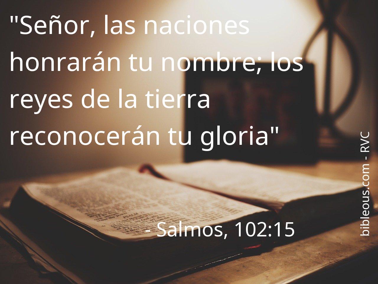 A pesar de todo, ninguna palabra escrita en la Biblia está de más. Ninguna palabra falta. La palabra del Señor se constata en las Sagradas Escrituras, ya sea en la versión 'Reina Valera Contemporánea' o en cualquier otra de las versiones de la Biblia. Por eso, reflexionar sobre el versículo Salmos, 102:15 del capítulo 102 del libro Salmos, nos ayuda a ser mejores cristianos y a acercarnos más a Dios. Es bueno recurrir al versículo Salmos, 102:15 en todas aquellas ocasiones en que nos pueda servir de guía para saber cómo actuar o para traer paz a nuestros corazones.