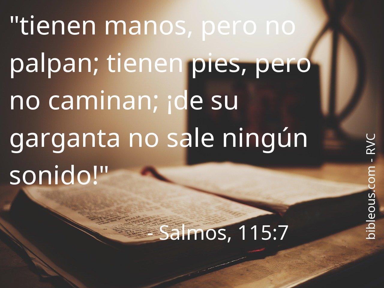 El versículo Salmos, 115:7 del capítulo 115 que nos presenta la versión 'Reina Valera Contemporánea' de La Biblia resulta muy interesante para realizar una lectura reflexiva y tratar de profundizar en la sabiduría de sus palabras. ¿Qué quiso decirnos Dios con el versículo Salmos, 115:7? El capítulo 115 consta de 18 versículos, que pueden ayudar a contextualizar y ofrecer mejores referencias para comprender lo que el Padre quiere decirnos en el versículo Salmos, 115:7.