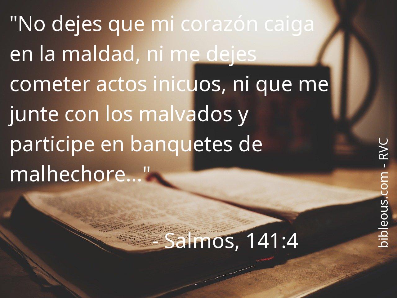 El versículo Salmos, 141:4 del capítulo 141 que nos presenta la versión 'Reina Valera Contemporánea' de La Biblia resulta muy interesante para realizar una lectura reflexiva y tratar de profundizar en la sabiduría de sus palabras. ¿Qué quiso decirnos Dios con el versículo Salmos, 141:4? El capítulo 141 consta de 10 versículos, que pueden ayudar a contextualizar y ofrecer mejores referencias para comprender lo que el Padre quiere decirnos en el versículo Salmos, 141:4.