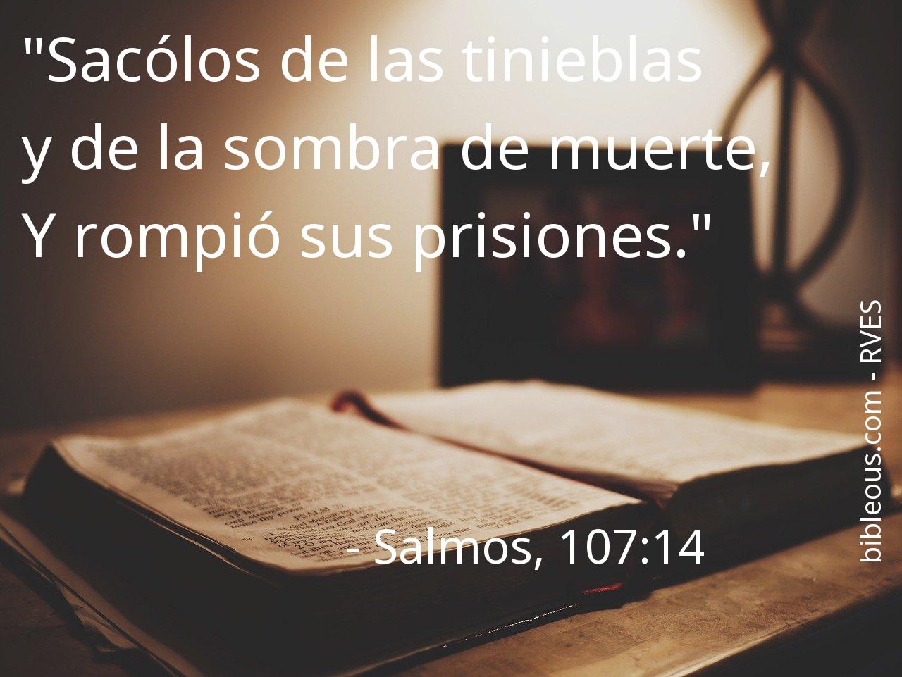 El versículo Salmos, 107:14 del capítulo 107 que nos presenta la versión 'Reina-Valera Antigua' de La Biblia resulta muy interesante para realizar una lectura reflexiva y tratar de profundizar en la sabiduría de sus palabras. ¿Qué quiso decirnos Dios con el versículo Salmos, 107:14? El capítulo 107 consta de 43 versículos, que pueden ayudar a contextualizar y ofrecer mejores referencias para comprender lo que el Padre quiere decirnos en el versículo Salmos, 107:14.