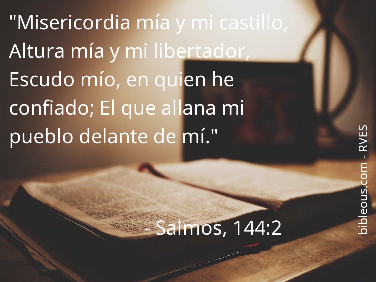 El versículo Salmos, 144:2 del capítulo 144 que nos presenta la versión 'Reina-Valera Antigua' de La Biblia resulta muy interesante para realizar una lectura reflexiva y tratar de profundizar en la sabiduría de sus palabras. ¿Qué quiso decirnos Dios con el versículo Salmos, 144:2? El capítulo 144 consta de 15 versículos, que pueden ayudar a contextualizar y ofrecer mejores referencias para comprender lo que el Padre quiere decirnos en el versículo Salmos, 144:2.