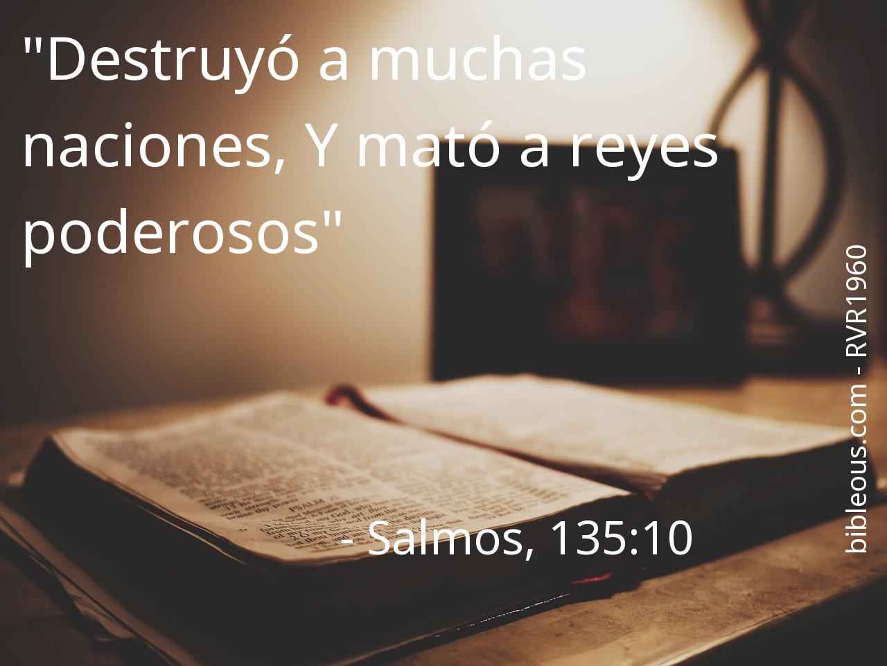A pesar de todo, ninguna palabra escrita en la Biblia está de más. Ninguna palabra falta. La palabra del Señor se constata en las Sagradas Escrituras, ya sea en la versión 'Biblia Reina Valera 1960' o en cualquier otra de las versiones de la Biblia. Por eso, reflexionar sobre el versículo Salmos, 135:10 del capítulo 135 del libro Salmos, nos ayuda a ser mejores cristianos y a acercarnos más a Dios. Es bueno recurrir al versículo Salmos, 135:10 en todas aquellas ocasiones en que nos pueda servir de guía para saber cómo actuar o para traer paz a nuestros corazones.